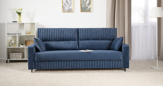 Диван-кровать прямой Дакота ТД 584 велюр Vendetta 24 синий, Riga 1598 z1 col 20 серо-голубой, Romeo 06