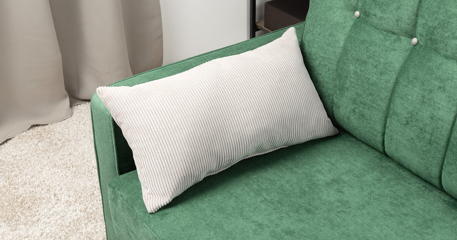 Объемные подушки дивана обеспечивают эргономичную посадку, а ровное спальное место - полноценный ночной отдых.