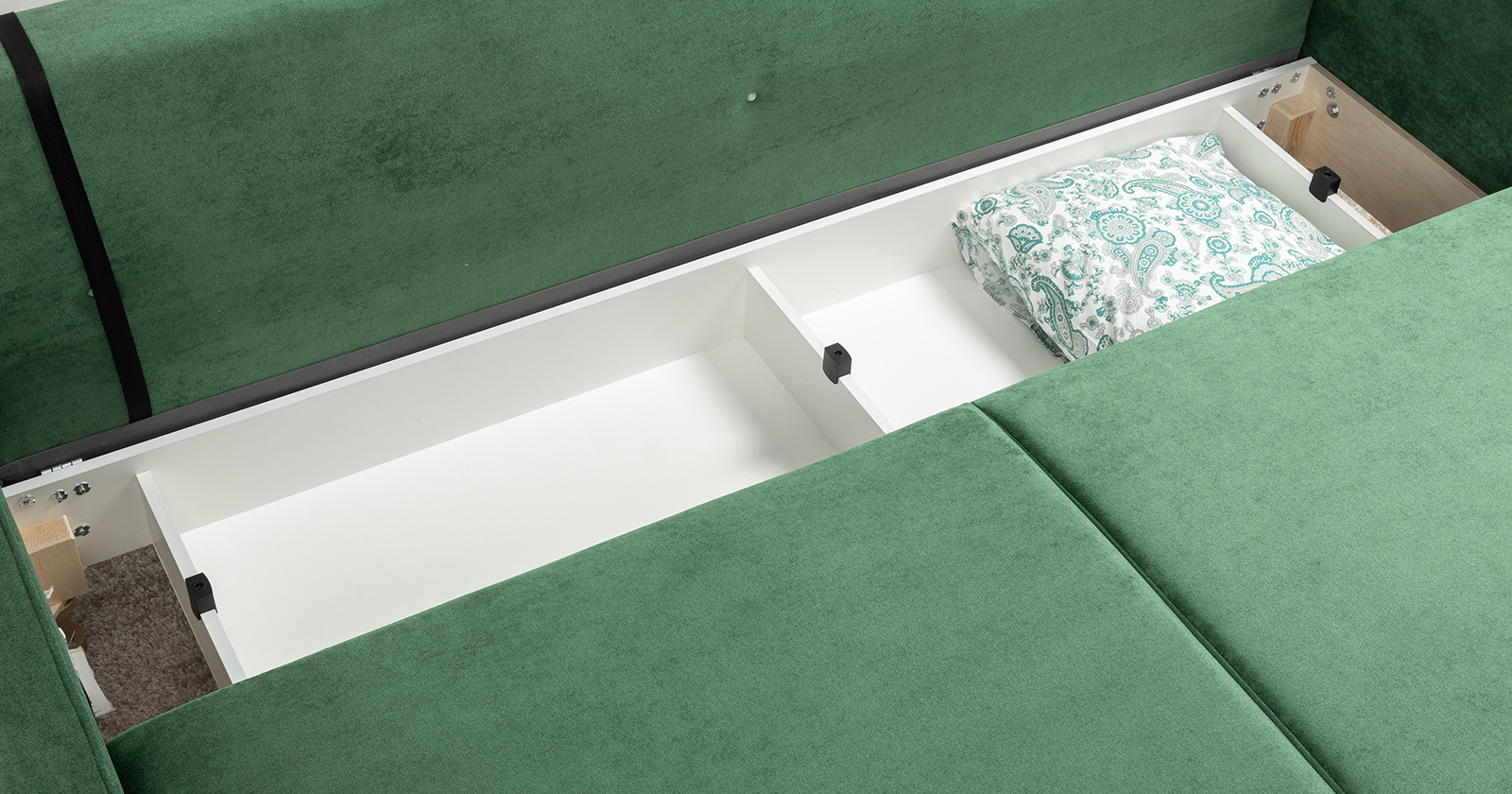 Диван-кровать угловой Арно ТД 566 велюр Лаки 20 хвойный зеленый, Vertical 910 молочно-серый, сборка на любую сторону