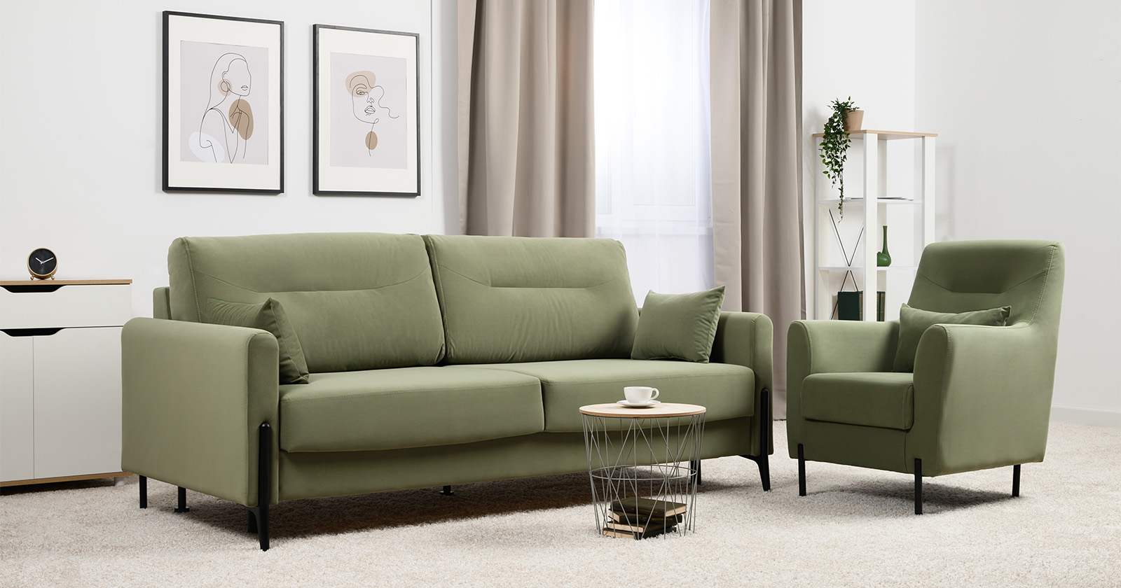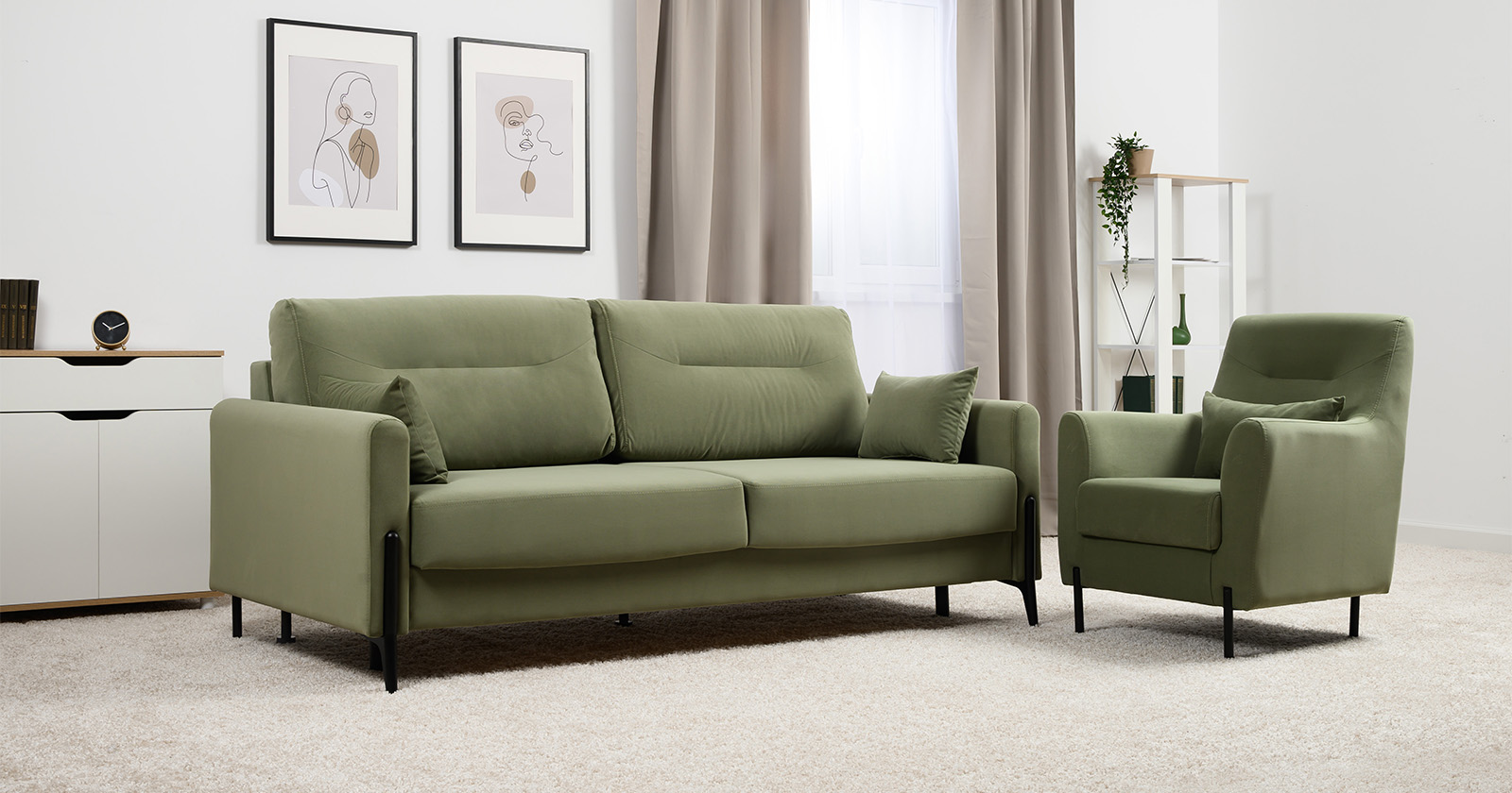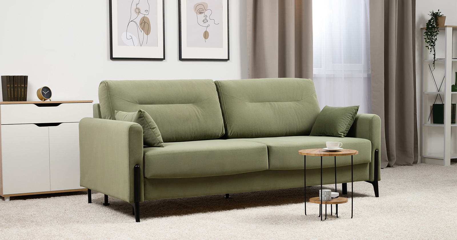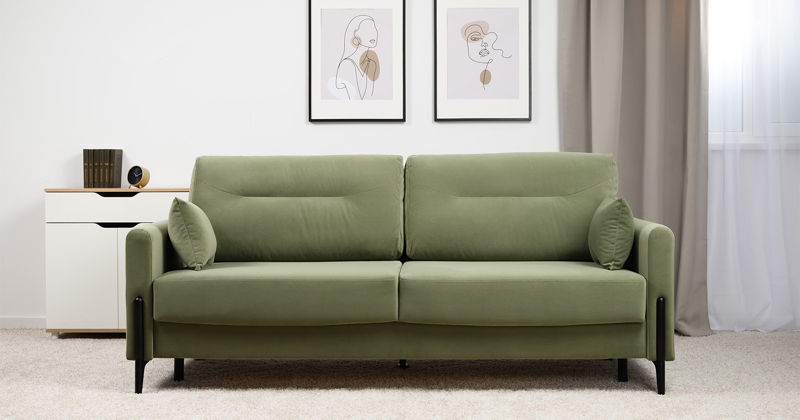 Диван-кровать прямой Барселона ТД 672 велюр Diagonal 694 оливковый