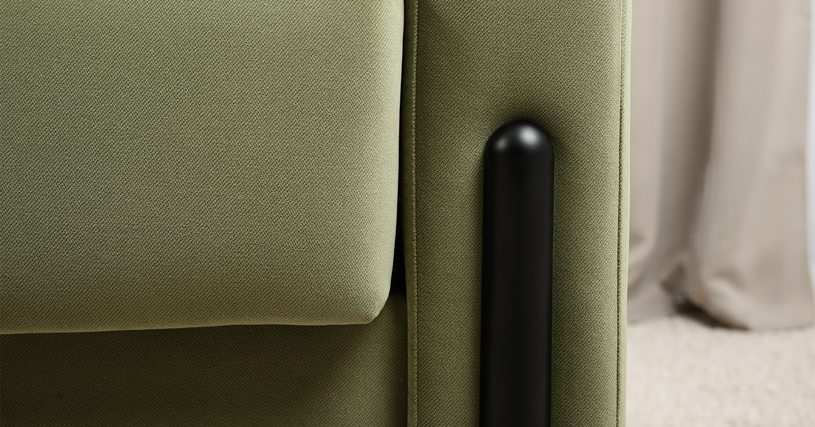 Металлические опоры плавно переходят в декоративный элемент подлокотника. Декоративная утяжка по приспинным подушкам