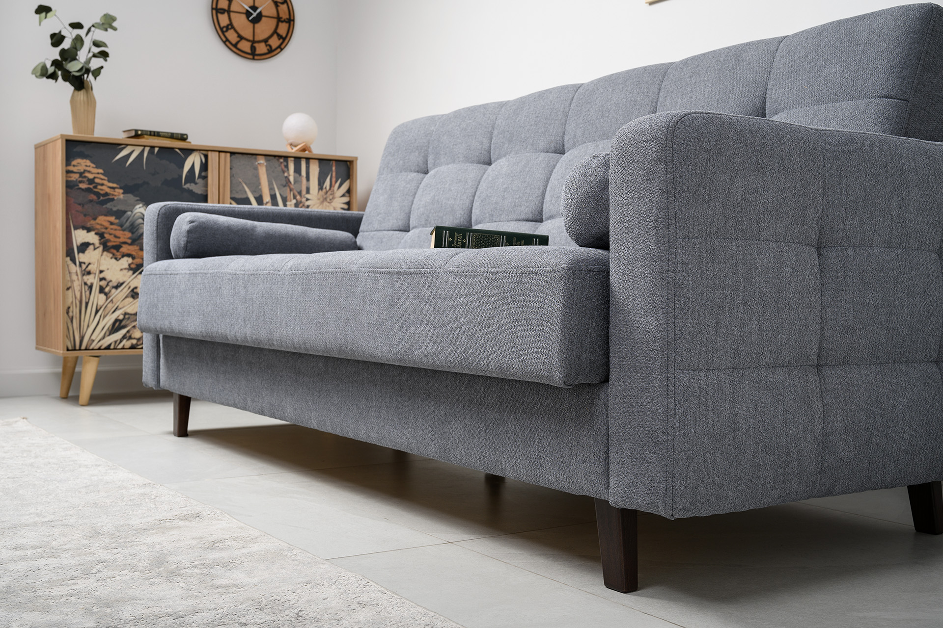 Сдержанная форма скандинавского минимализма дивана Эмили — решение для ценителей лаконичного дизайна. Усовершенствованная система комфорта в виде комбинации ортопедических гнутоклееных лат и независимого пружинного блока идеально подойдет для ежедневного использования.