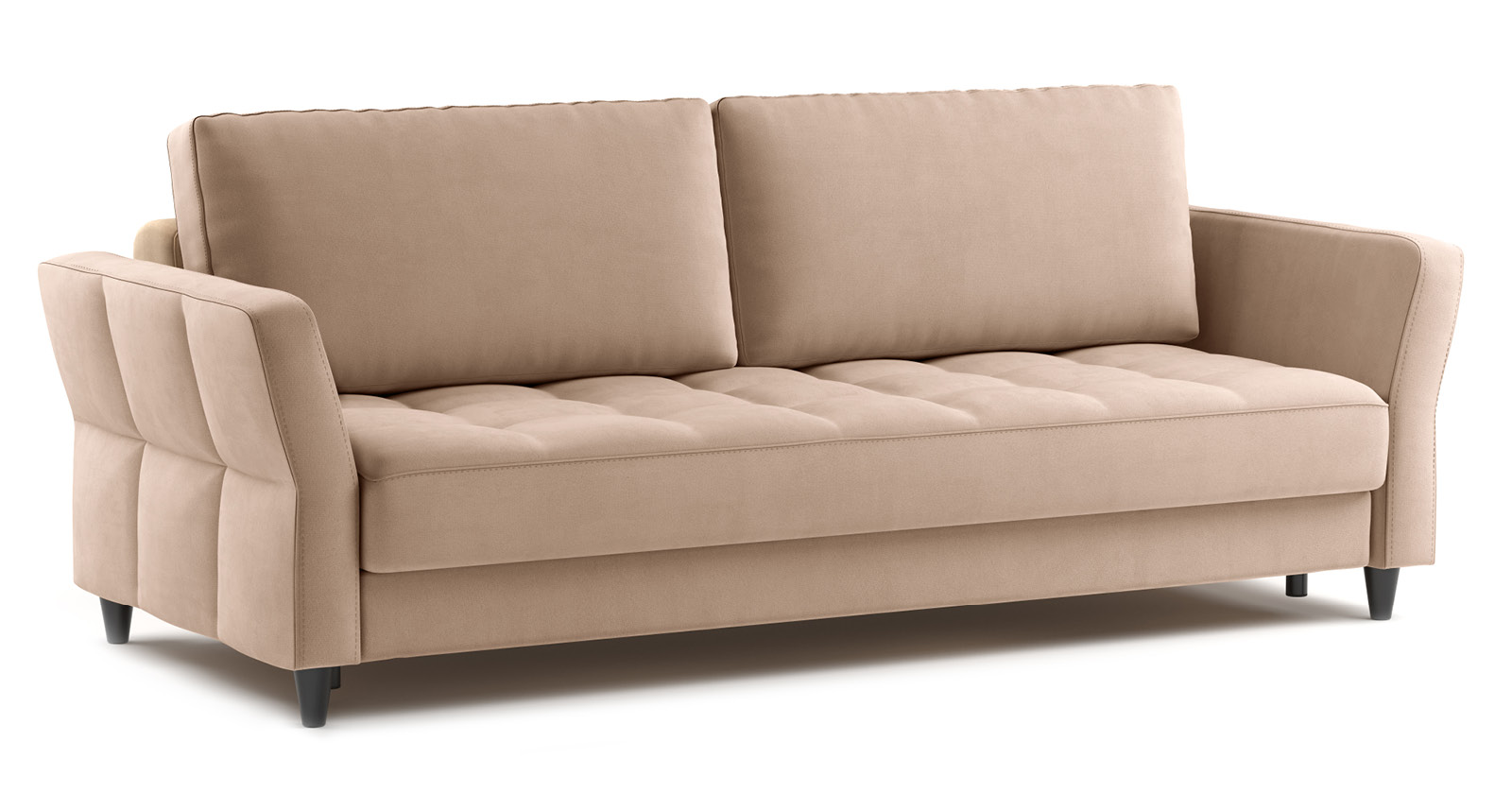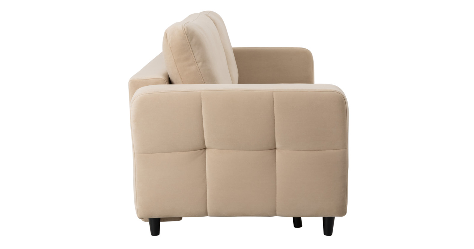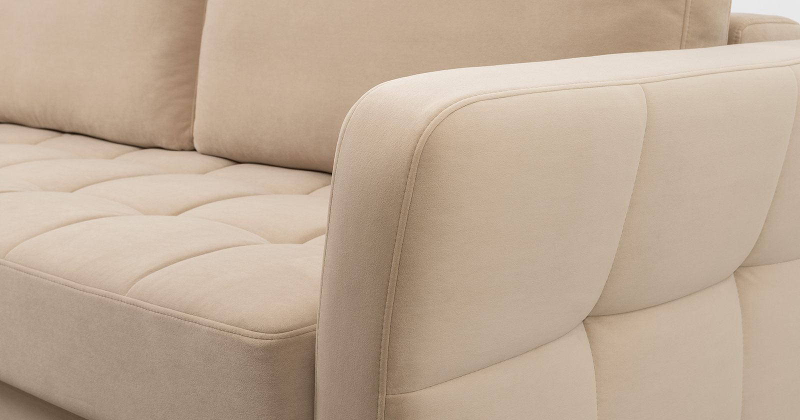 Ровная отстрочка по всему периметру сидения и стежка? создающая эффект пышности выделенных форм. Подлокотники прямые с изгибом в наружные стороны, с выраженной стежкой по лицевой стороне. Стежка на посадочной части дивана.