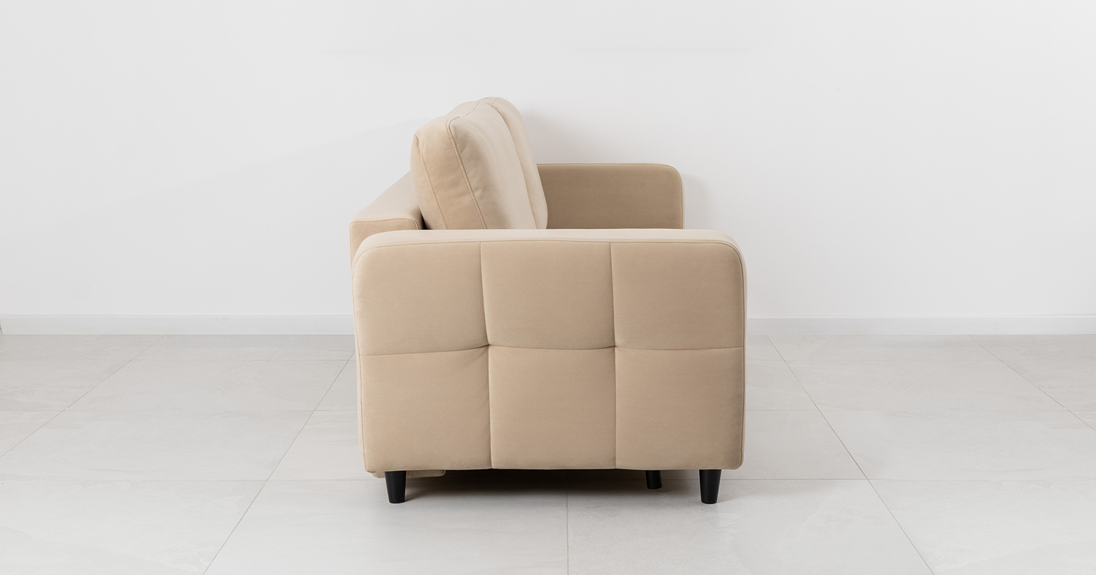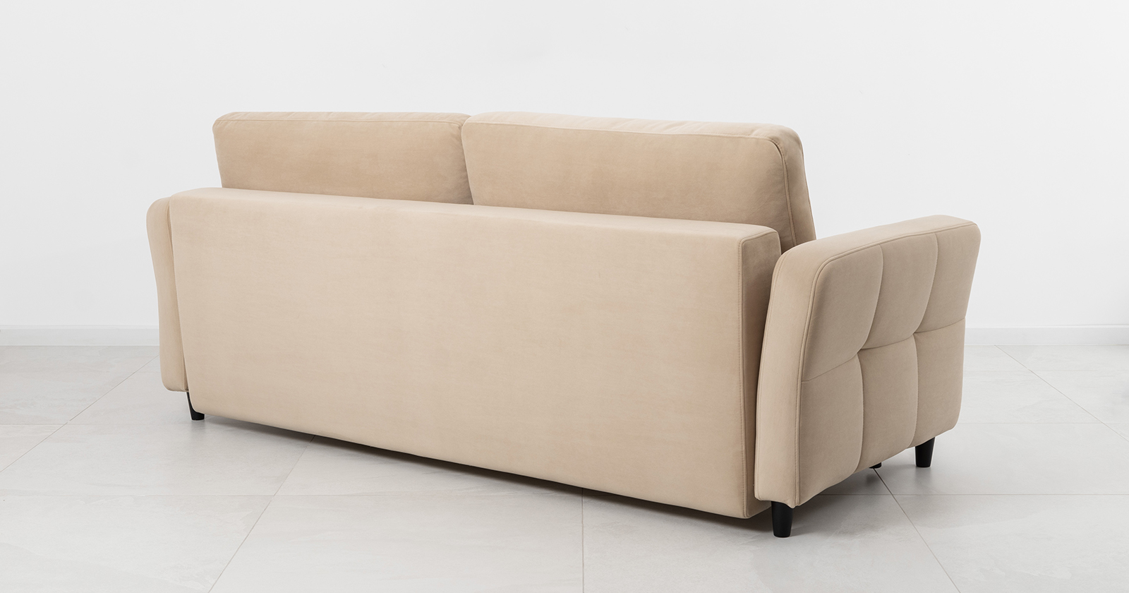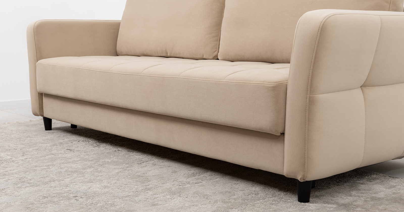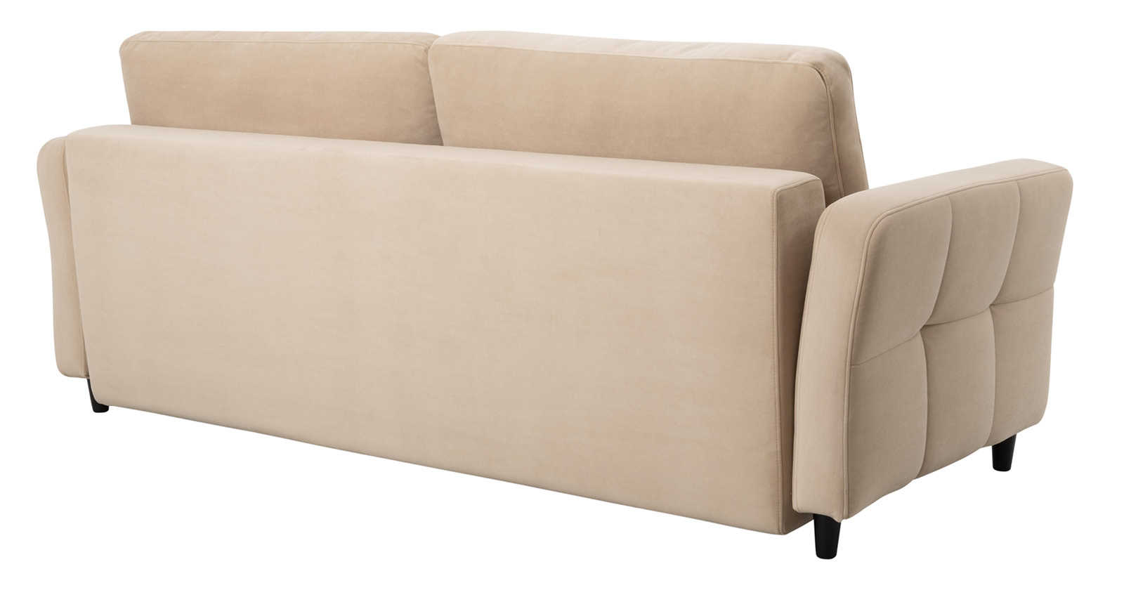 Ровная отстрочка по всему периметру сидения и стежка? создающая эффект пышности выделенных форм. Подлокотники прямые с изгибом в наружные стороны, с выраженной стежкой по лицевой стороне. Стежка на посадочной части дивана.