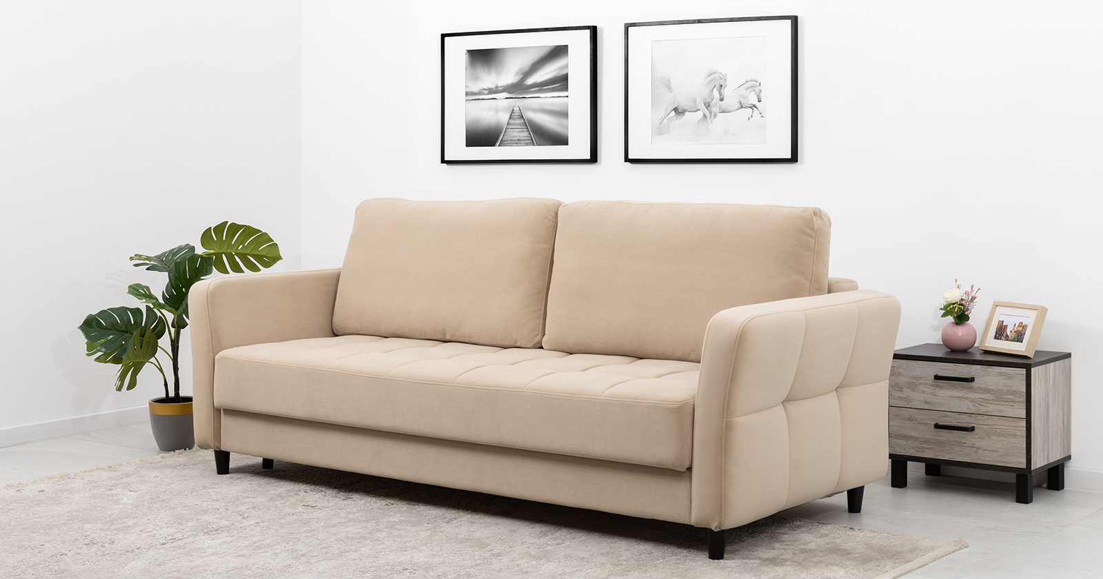 Диван-кровать прямой Невада ТД 569 велюр Vendetta 2 кремовый