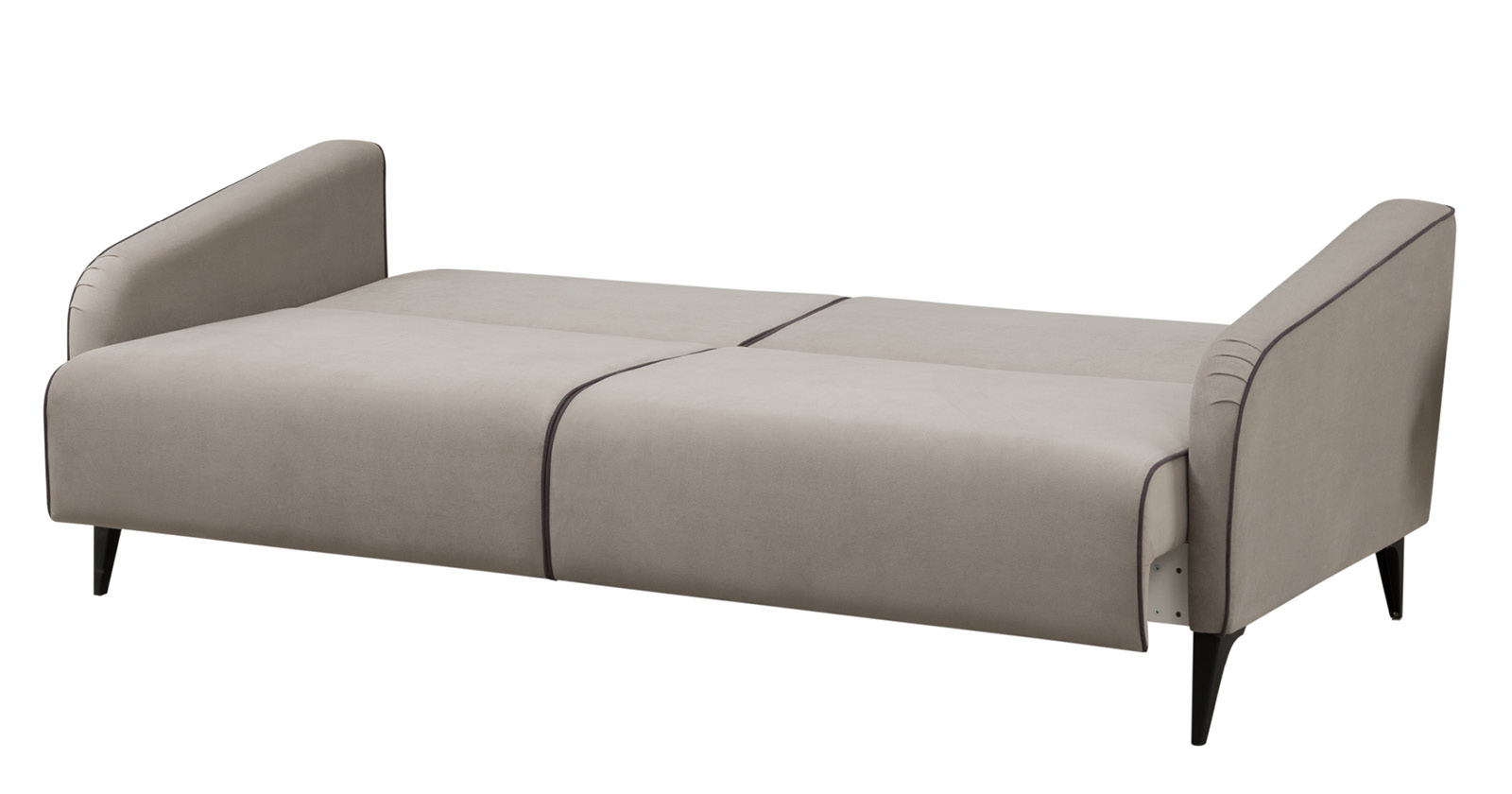 Спинка и сиденье разделяются пополам двойным кантом по центру и одинарным по краям сидения, для придания одной единой формы. Подлокотники с изгибом на лицевой стороне и мягкими закругленным углом со складками, с выраженным контрастным ровным кантом по внешнему контуру изделия и изогнутой линией канта.