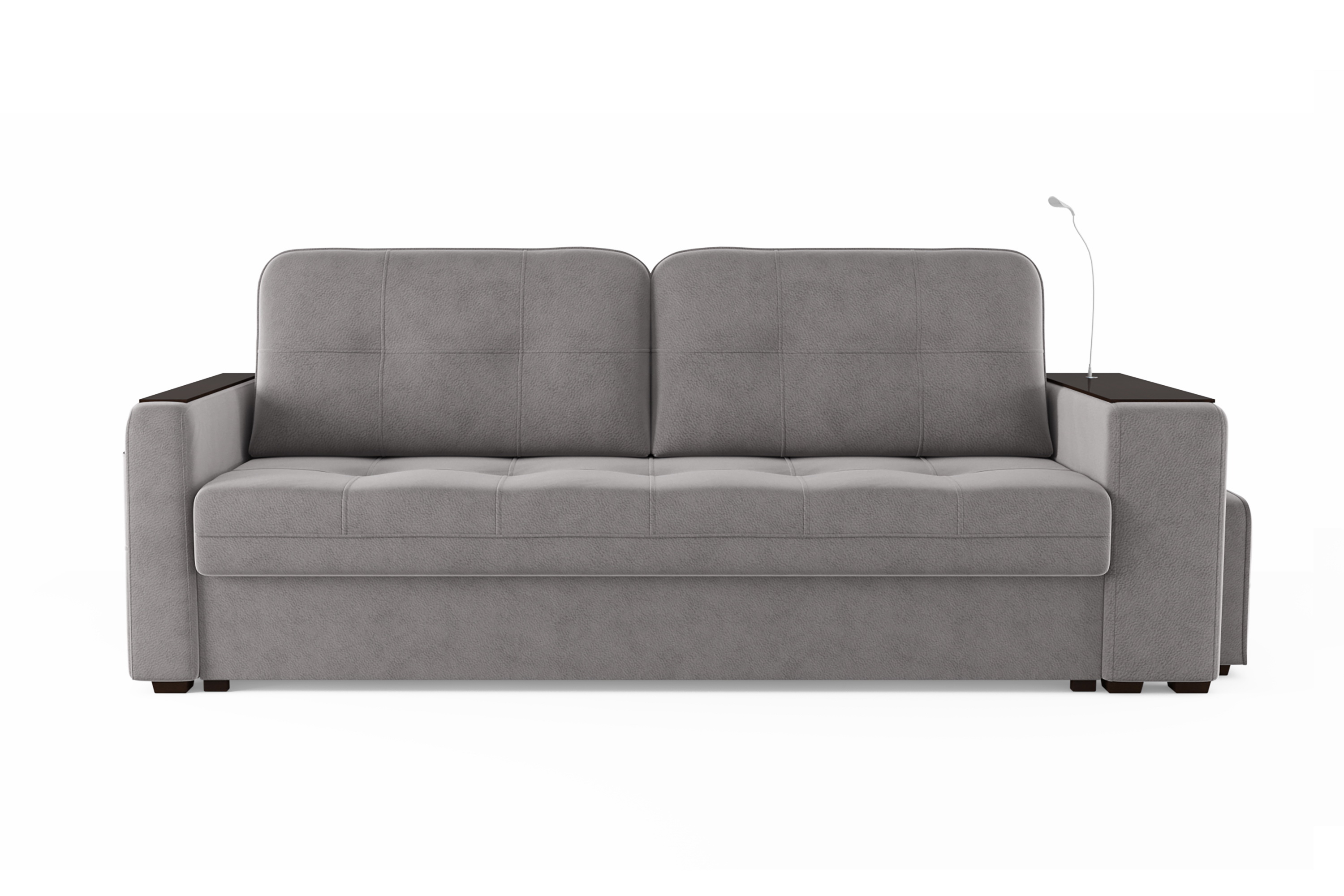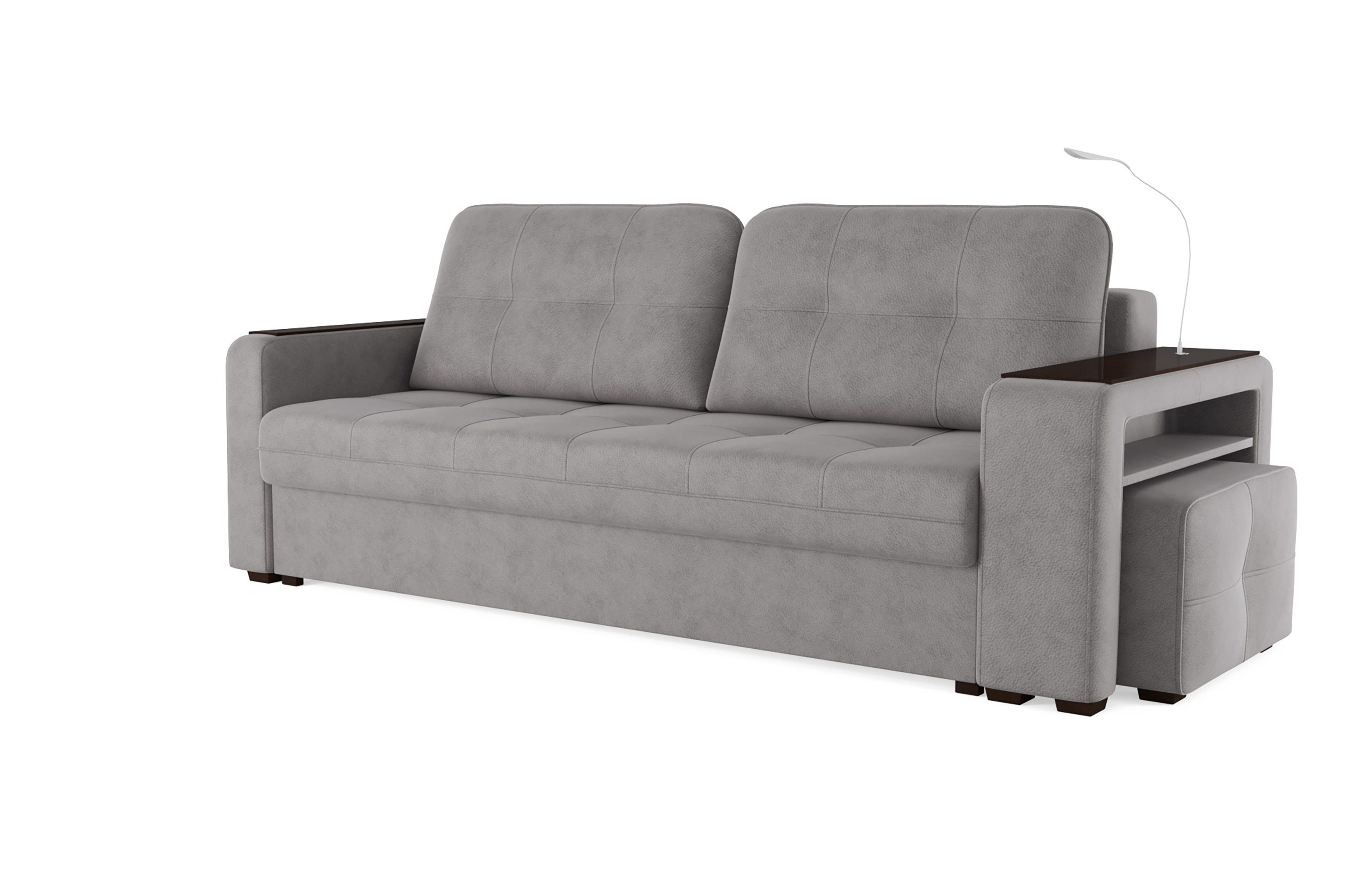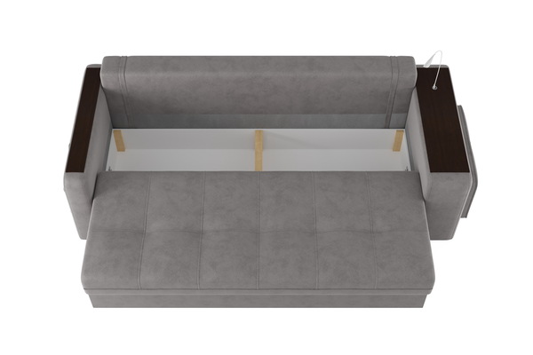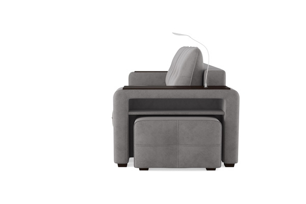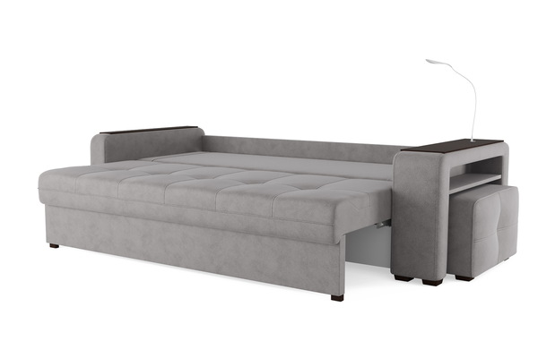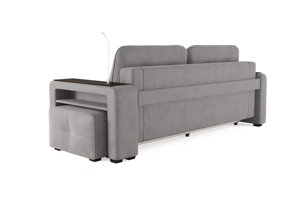 Диван «SMART 4» — это не просто мягкая мебель, а один из ключевых элементов интерьера с обширным функционалом, где эстетика тесно соседствует с комфортом и эргономичностью.  Одна боковина оснащена карманом для хранения мелочей и гаджетов, другая боковина совмещает одновременно: рабочую поверхность, за счет широкой накладки, двойной  usb - порт  и портативную лампу точечного света, которая входит в комплект. Добавить контрастных деталей в интерьер поможет пуф, интегрированный в подлокотник. Этот вариант для современных людей, которые ценят комфорт и удобство отдыха. Мягкое сиденье с легкостью трансформируется в просторное спальное место, на котором смогут утроиться ваши гости. Стильный и уютный, он станет отличным решением, если вы ищите не только красоту, но и комфорт.