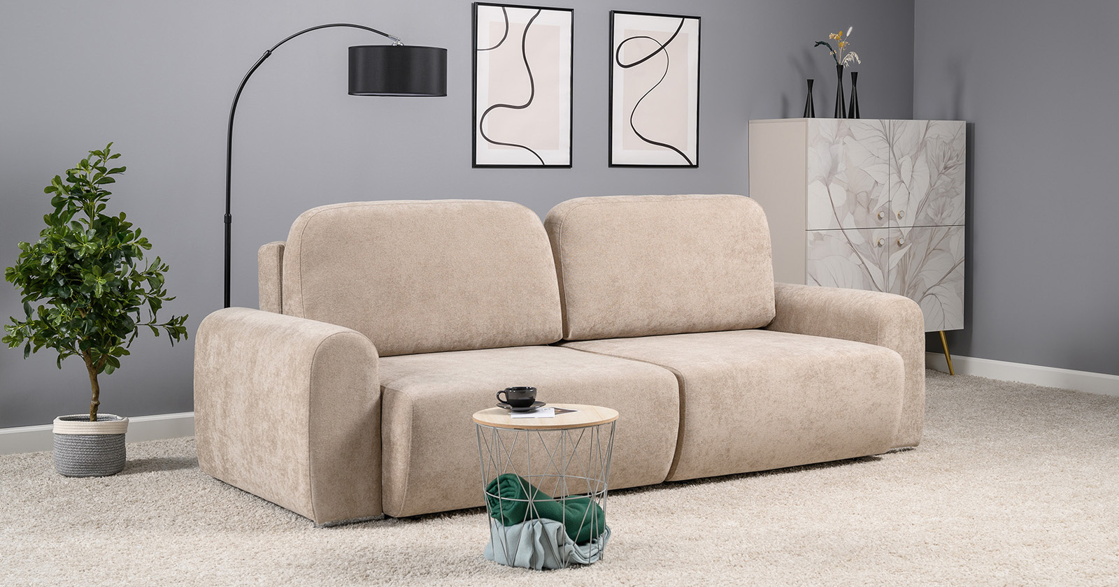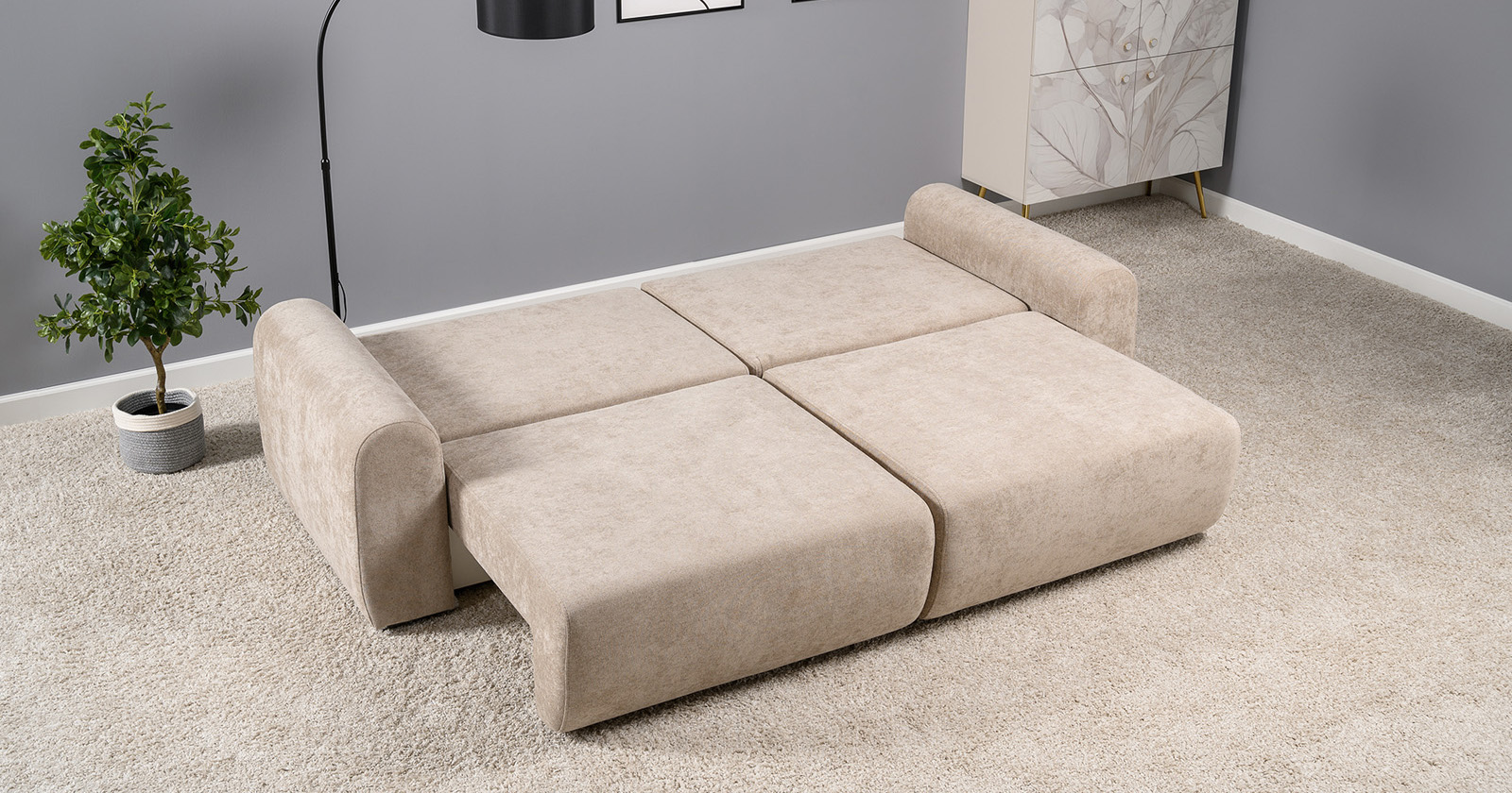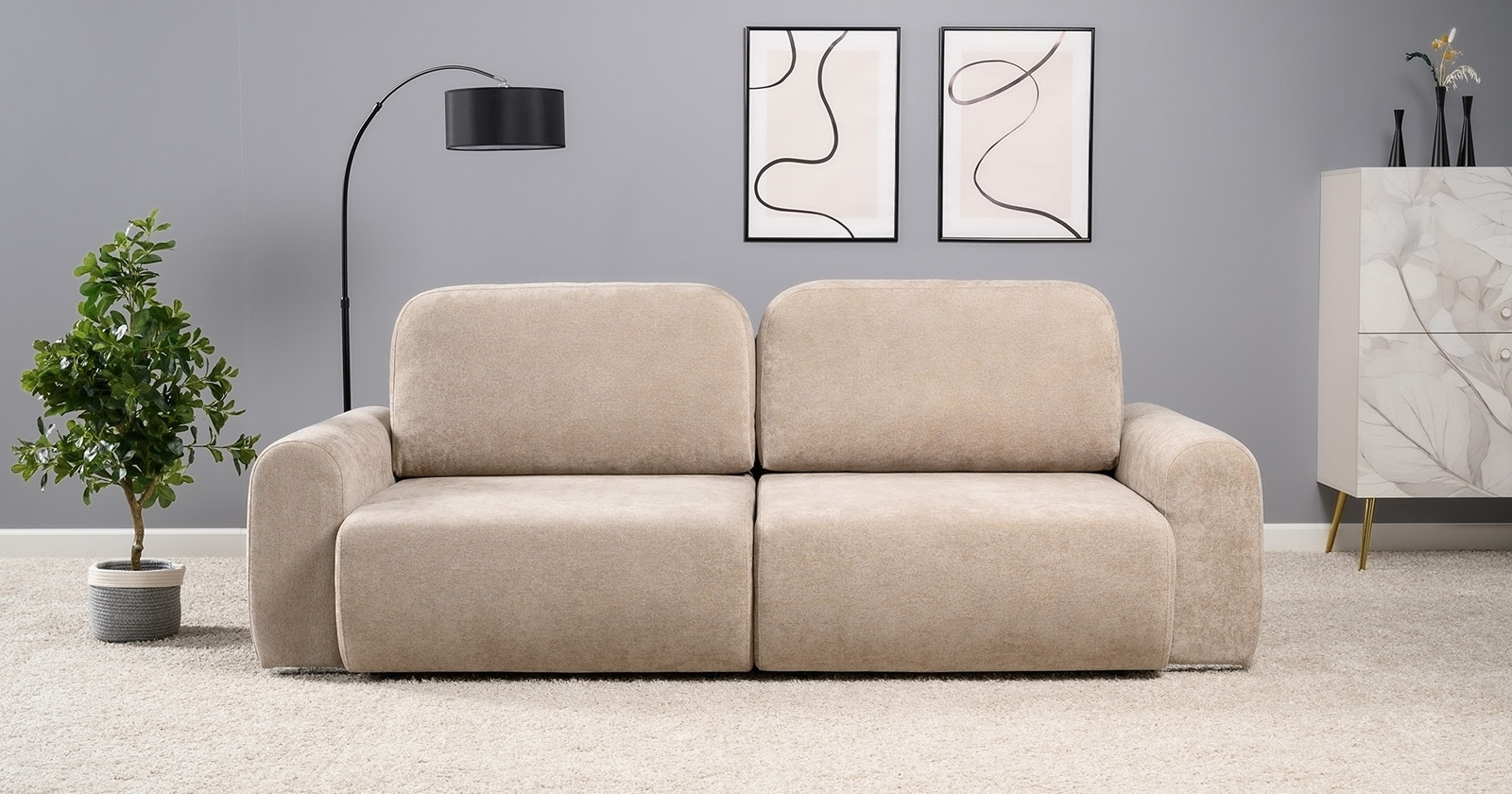 Диван-кровать прямой Тэдди 1502 композиция 1, букле Pique 006 бежевый, модульная система