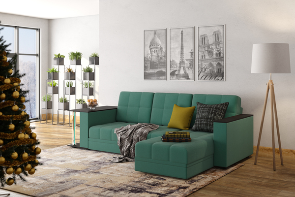 Диван-кровать угловой Атлант со столиком велюр зеленый со спальным местом (сборка на любую сторону)