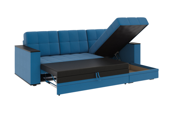 Диван-кровать угловой Атлант велюр синий со спальным местом (сборка на любую сторону)