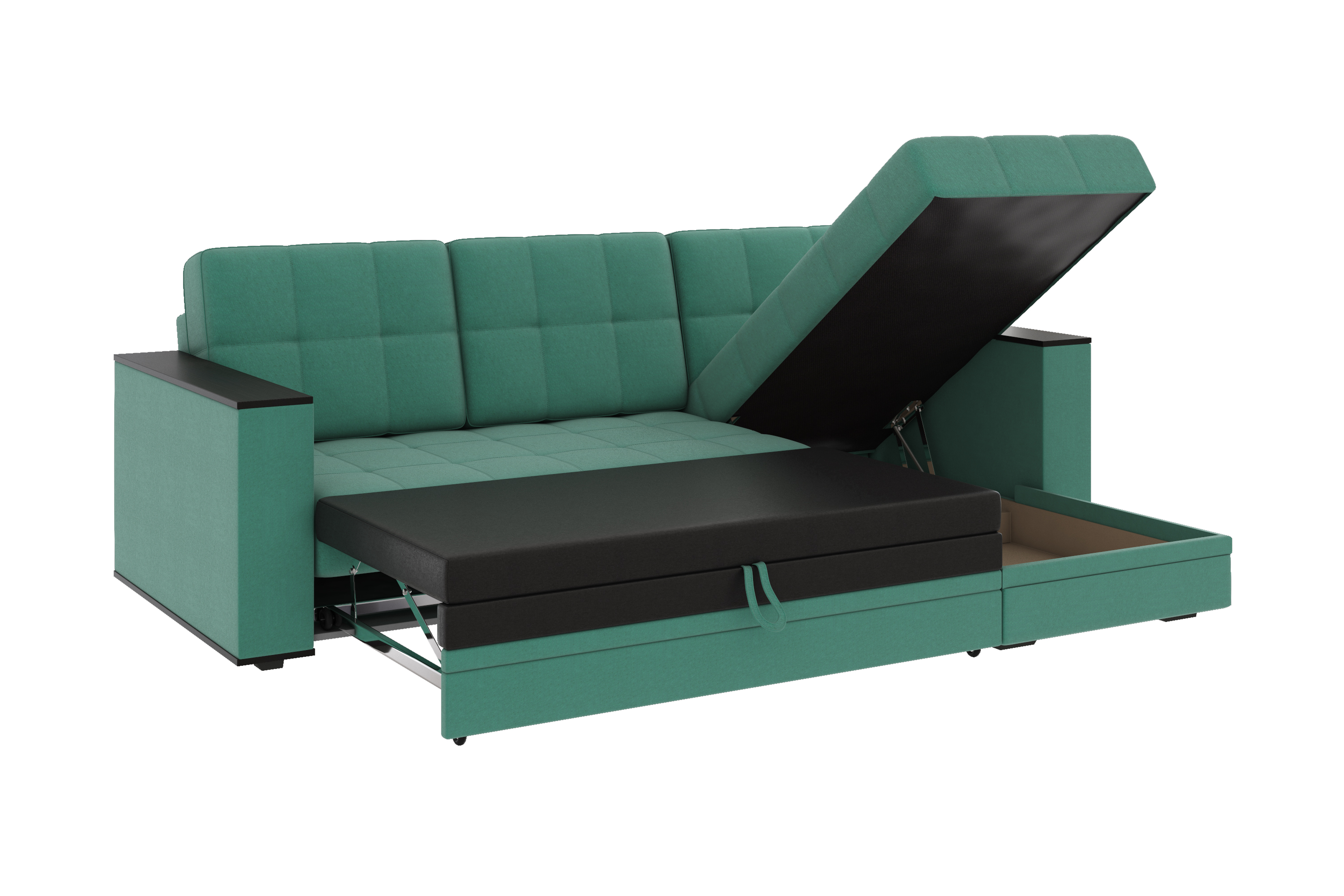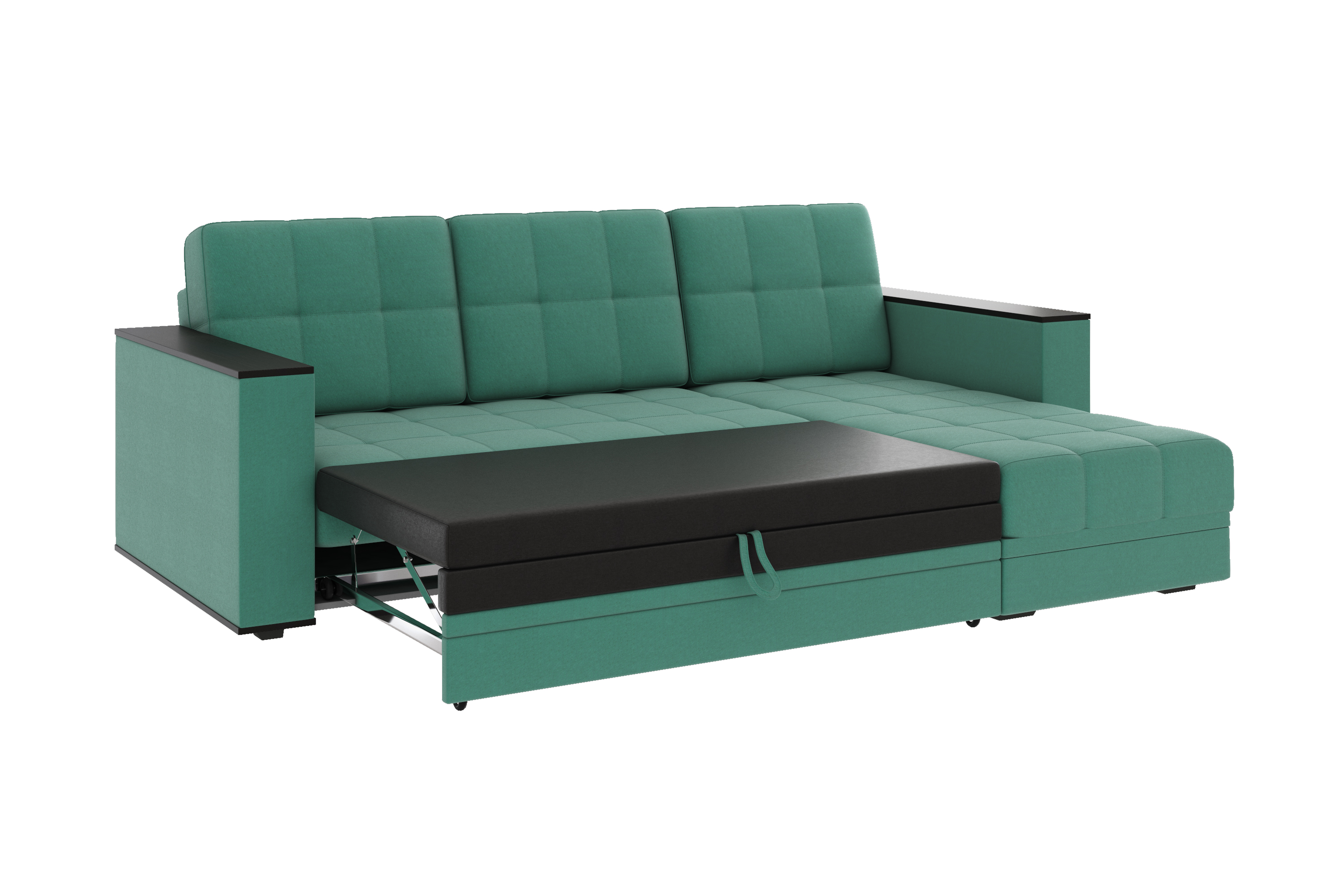 Диван-кровать угловой Атлант велюр зеленый со спальным местом (сборка на любую сторону)
