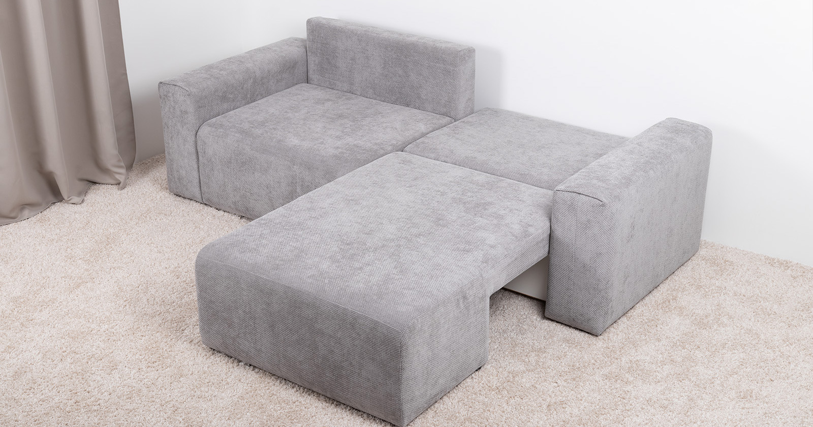 Диван-кровать угловой Оксфорд 712 композиция 1, шенилл MUZA 07 светло-серый, модульная система, сборка на любую сторону