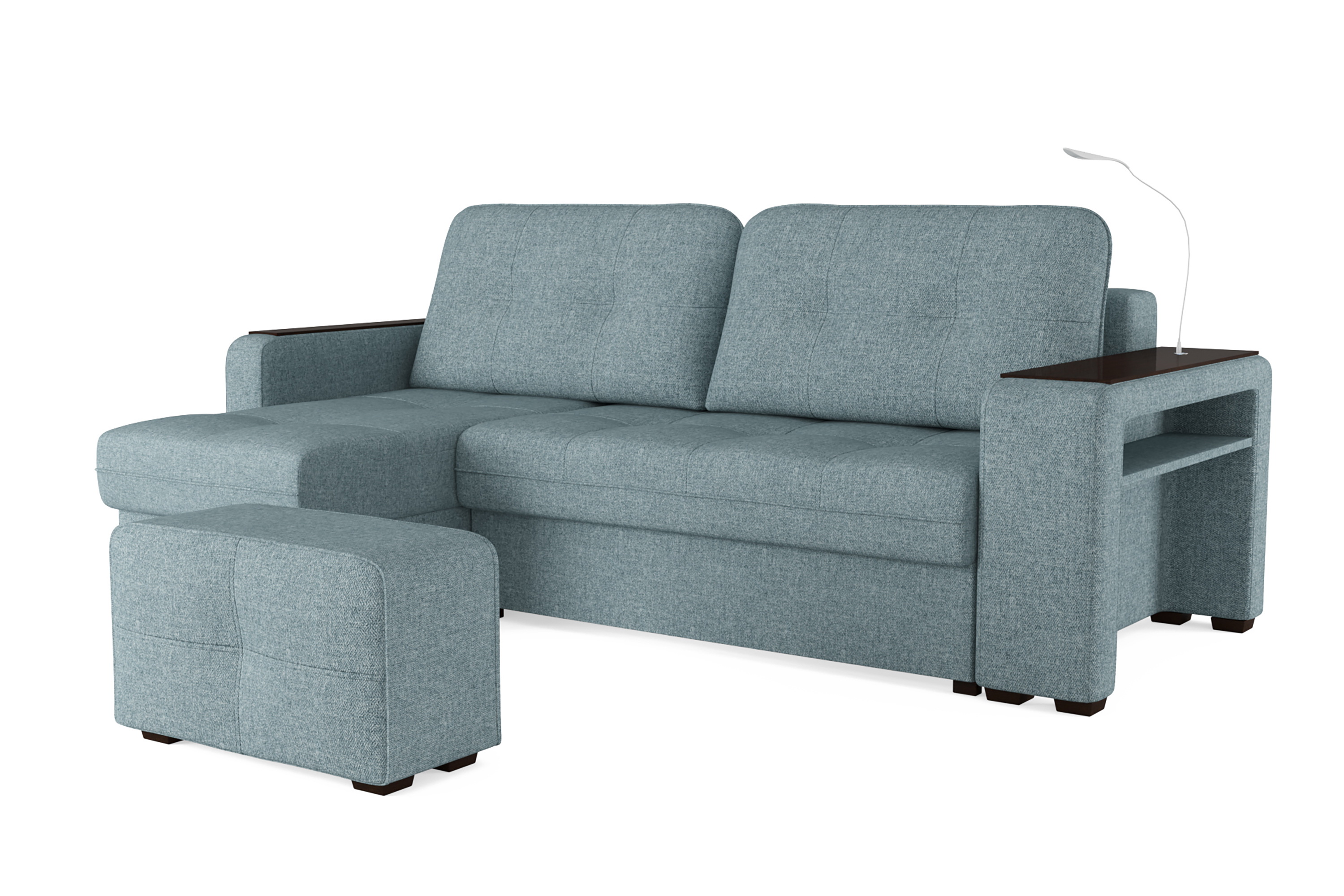 Баланс между эстетикой и функциональностью — основное требование к современной мебели. Мягкая мебель должна быть не просто красивой, но прежде всего удобной и функциональной. Особенно если речь идет о маленьких квартирах, где гостиная может быть одновременно и спальней, и кабинетом. С этой задачей прекрасно справится диван «SMART 4». Уникальный дизайн делает модель по-настоящему универсальной. Одна боковина оснащена карманом для хранения мелочей и гаджетов, другая боковина совмещает одновременно: рабочую поверхность, за счет широкой накладки, двойной usb - порт и портативную лампу точечного света, которая входит в комплект. Добавить контрастных деталей в интерьер поможет пуф, интегрированный в подлокотник. Этот вариант для современных людей, которые ценят комфорт и удобство отдыха.