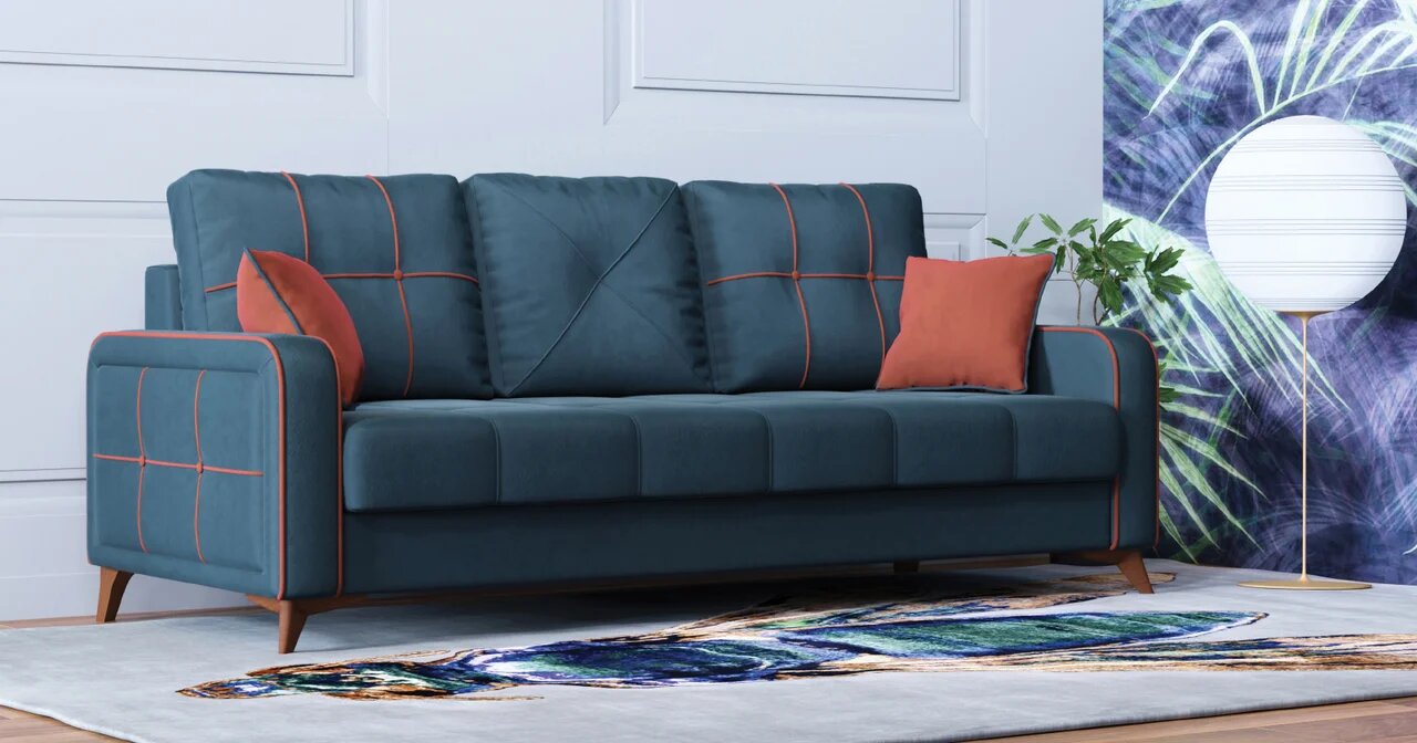 Диван прямой Черри ТД 176 искусственная замша темный деним, коралловый