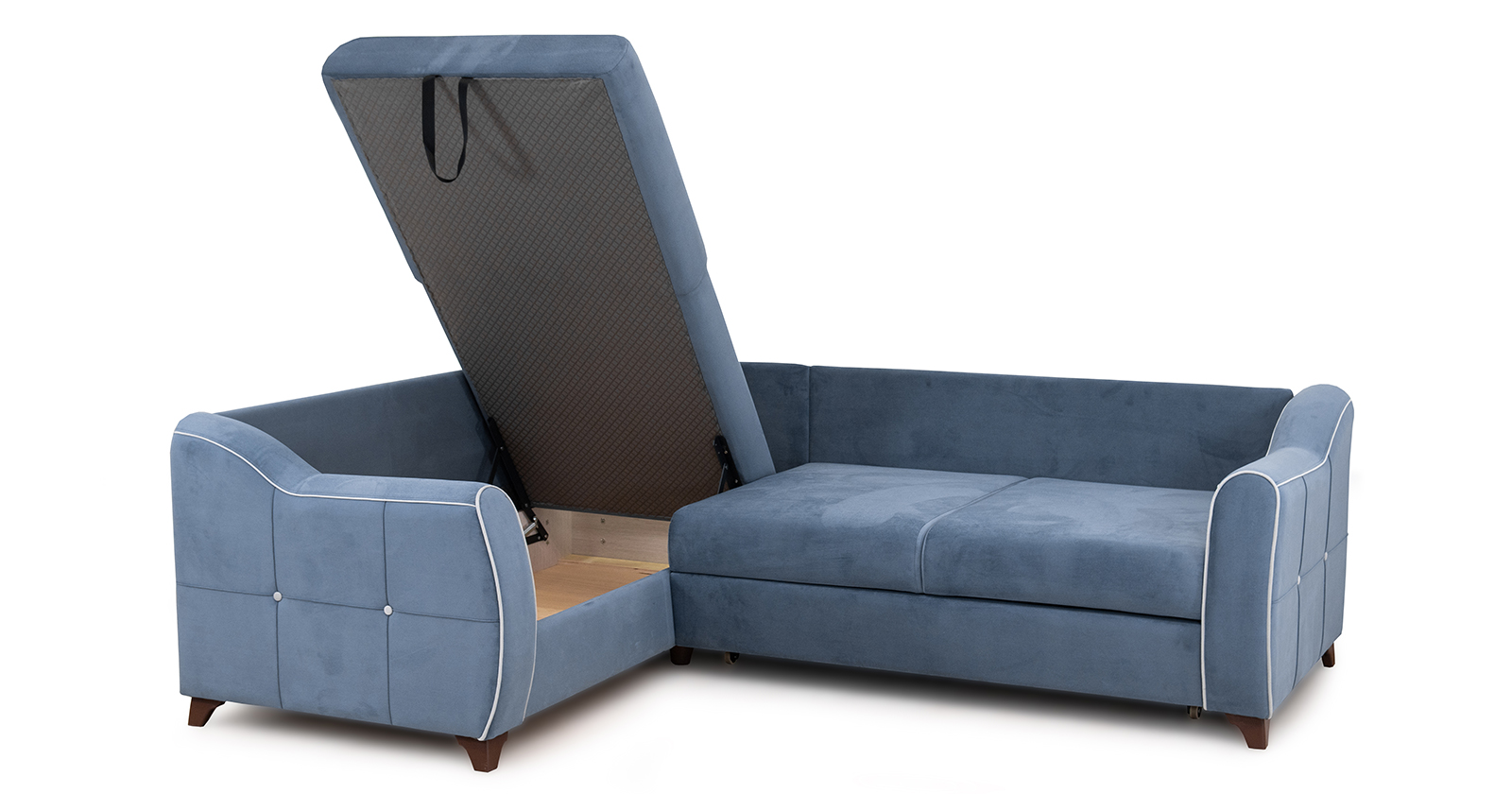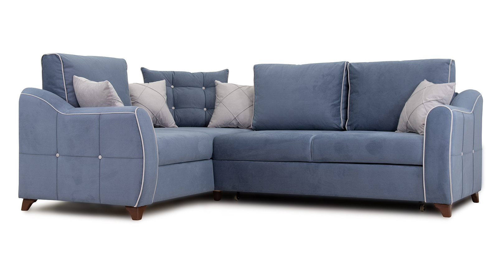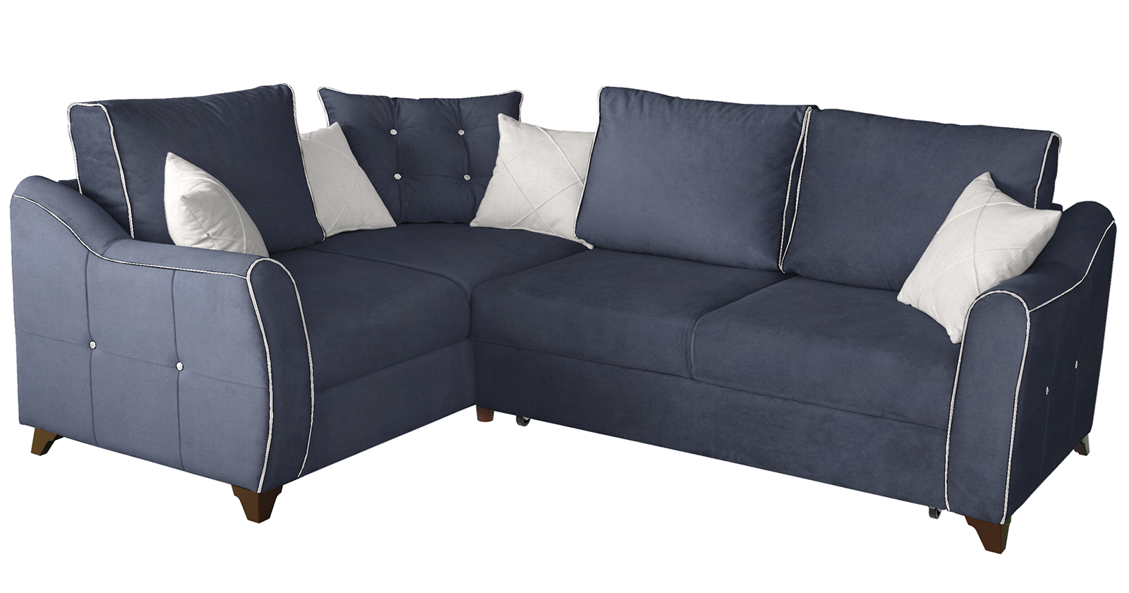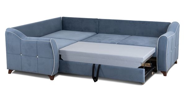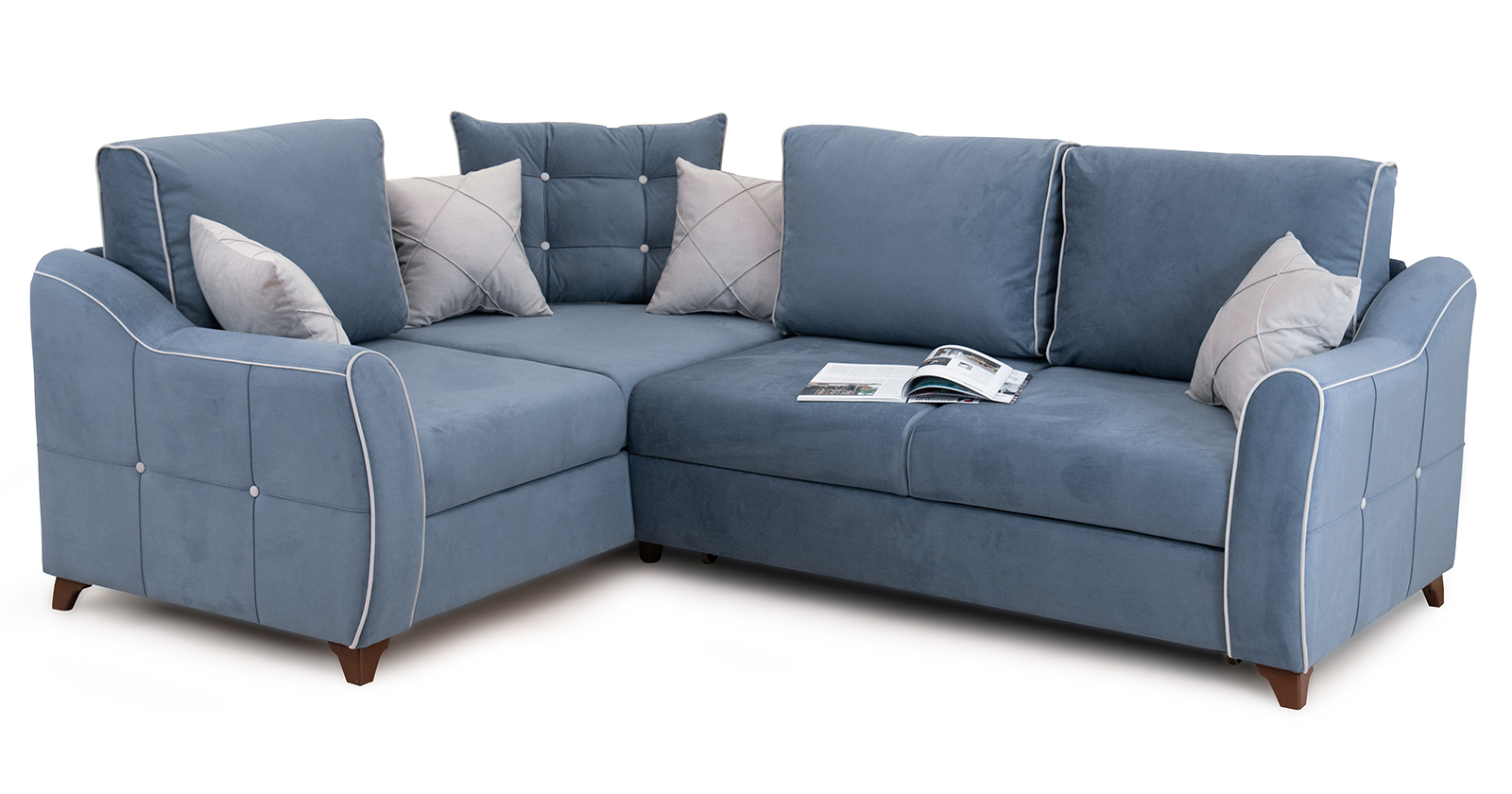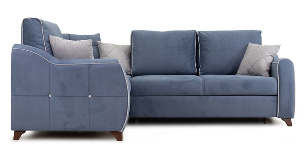 Диван-кровать угловой Тэдди 1504 композиция 2, букле Pique 009 синий, модульная система, сборка на любую сторону