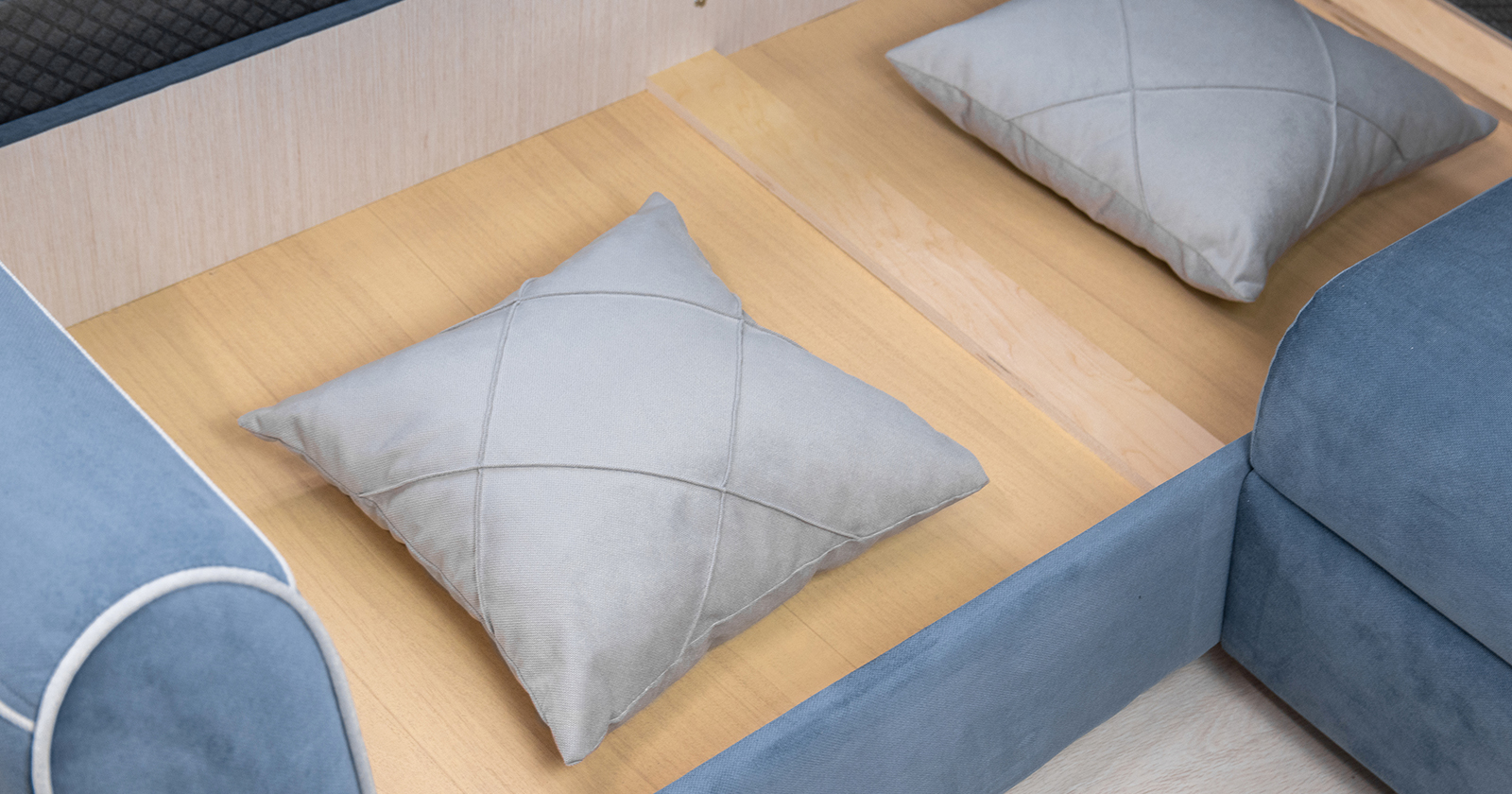Декоративный кант, пуговицы, отстрочка, утяжки на подушке и подлокотниках