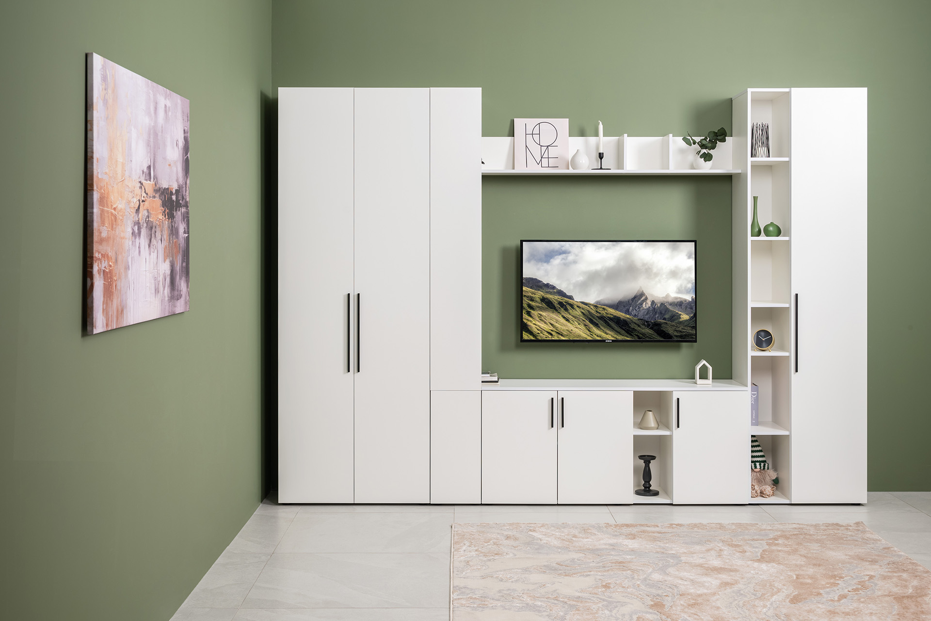 Гостиная Эйр композиция 1 белый PE шагрень, собирается на любую сторону