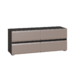 Тумба под ТВ Сидней 13.63 - 4 выдвижных ящика на шариковых направляющих полного выдвижения, Корпус тумбы выполнен из белой плиты, выдвижные ящики графично разделены горизонтальной черной полосой из алюминиевого профиля, Ящики открываются за края фасадов, Фрезеровка на фасадах, Светло-серые пластиковые опоры, Корпус: ЛДСП 16 мм, Фасады: МДФ 16 мм.