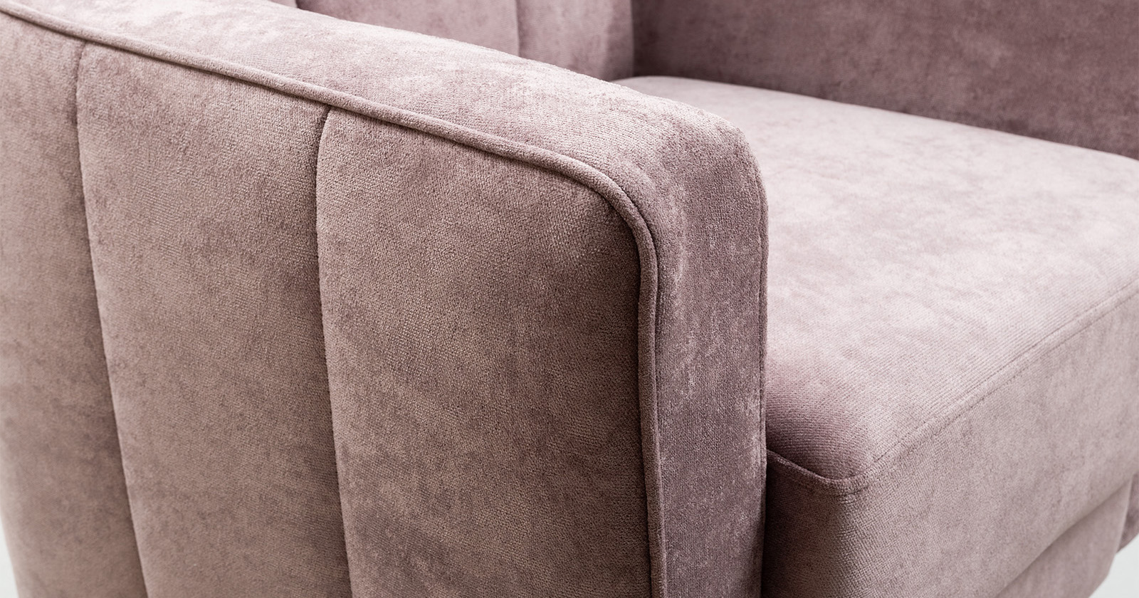 Стежка на внутренней спинке и боковине. Отделочная строчка по сидению. Декоративный кант в тон на подлокотниках и спинке. Изюминку коллекции придают металлические пуговицы на спинке.