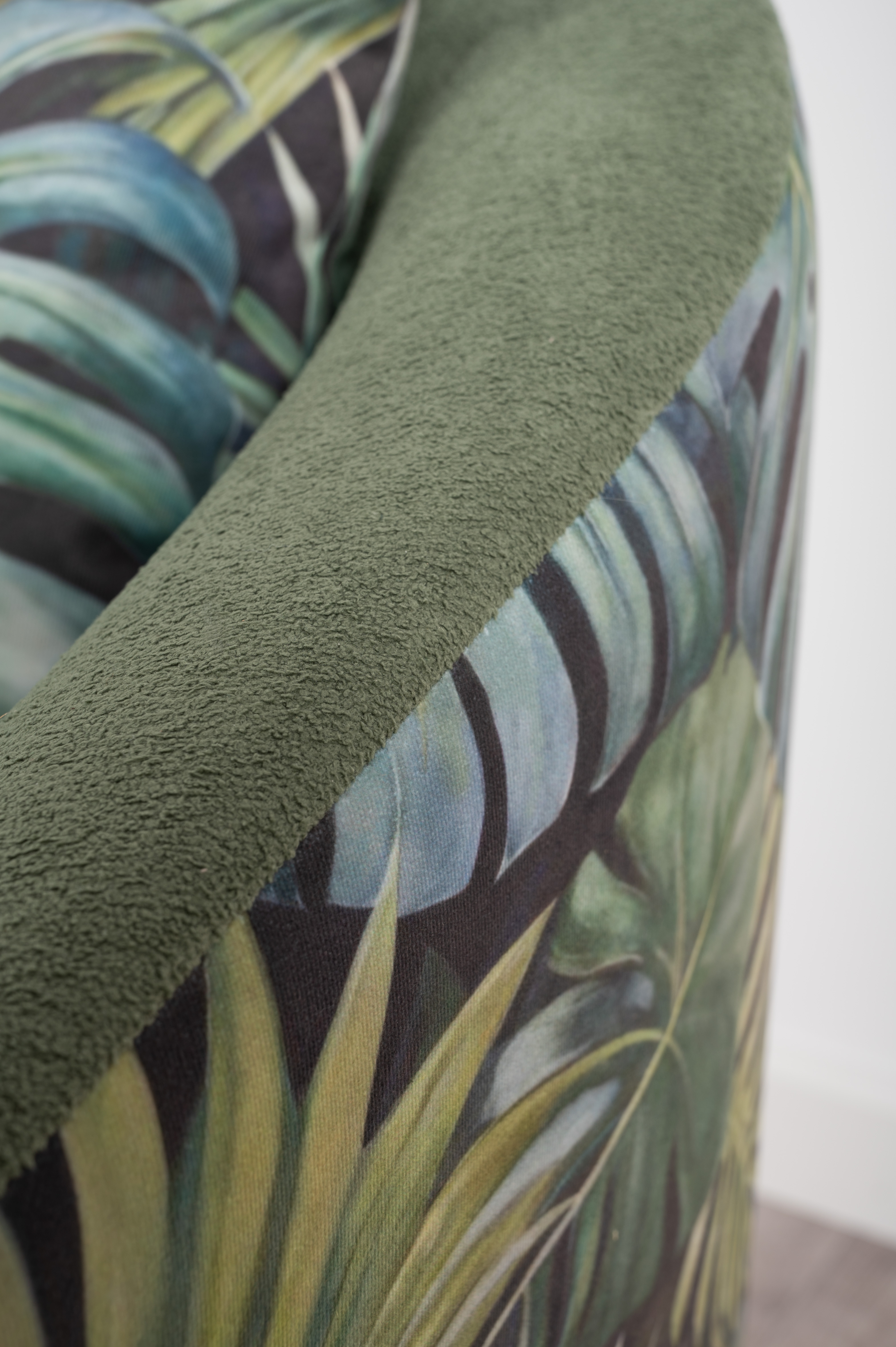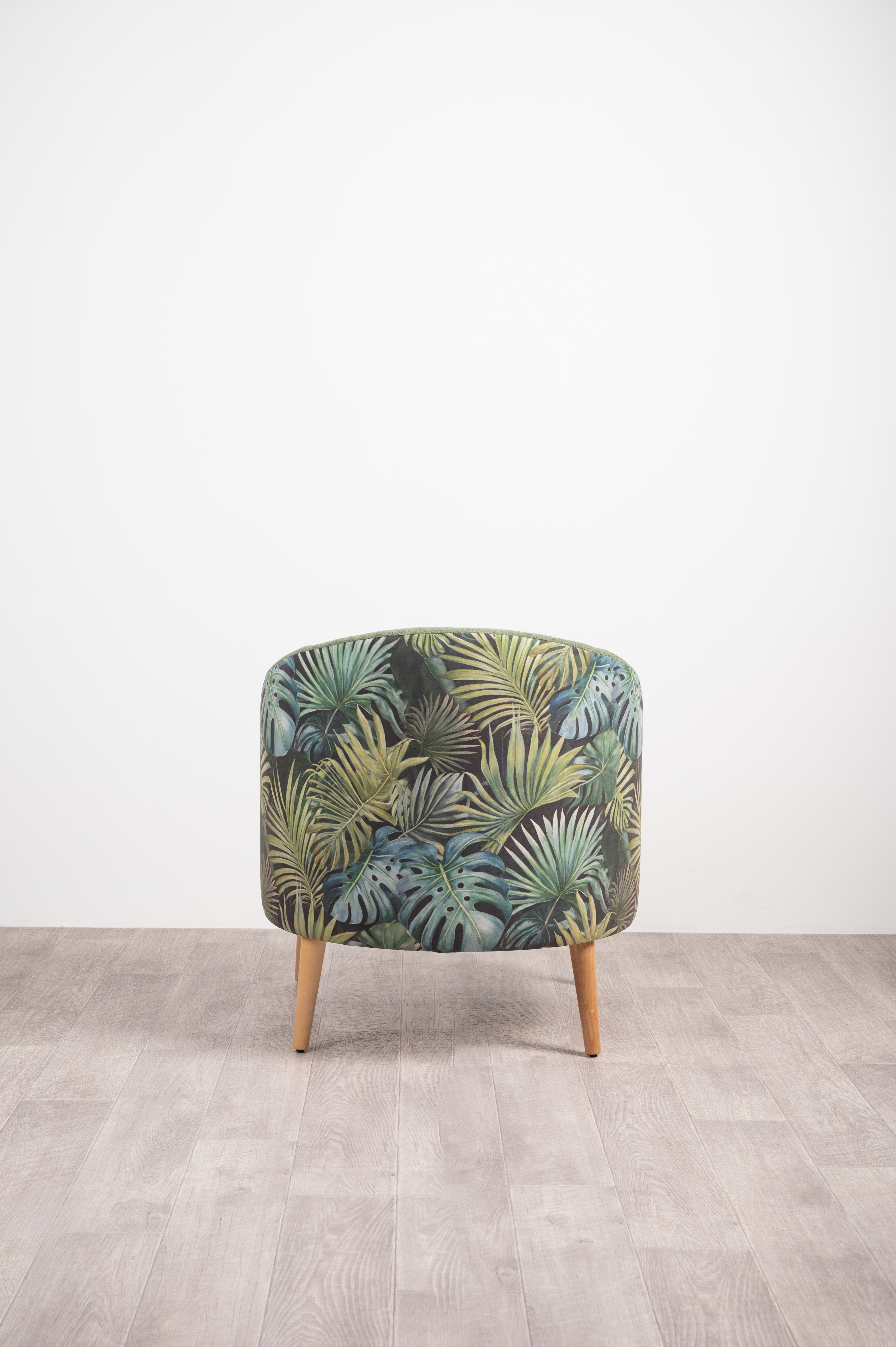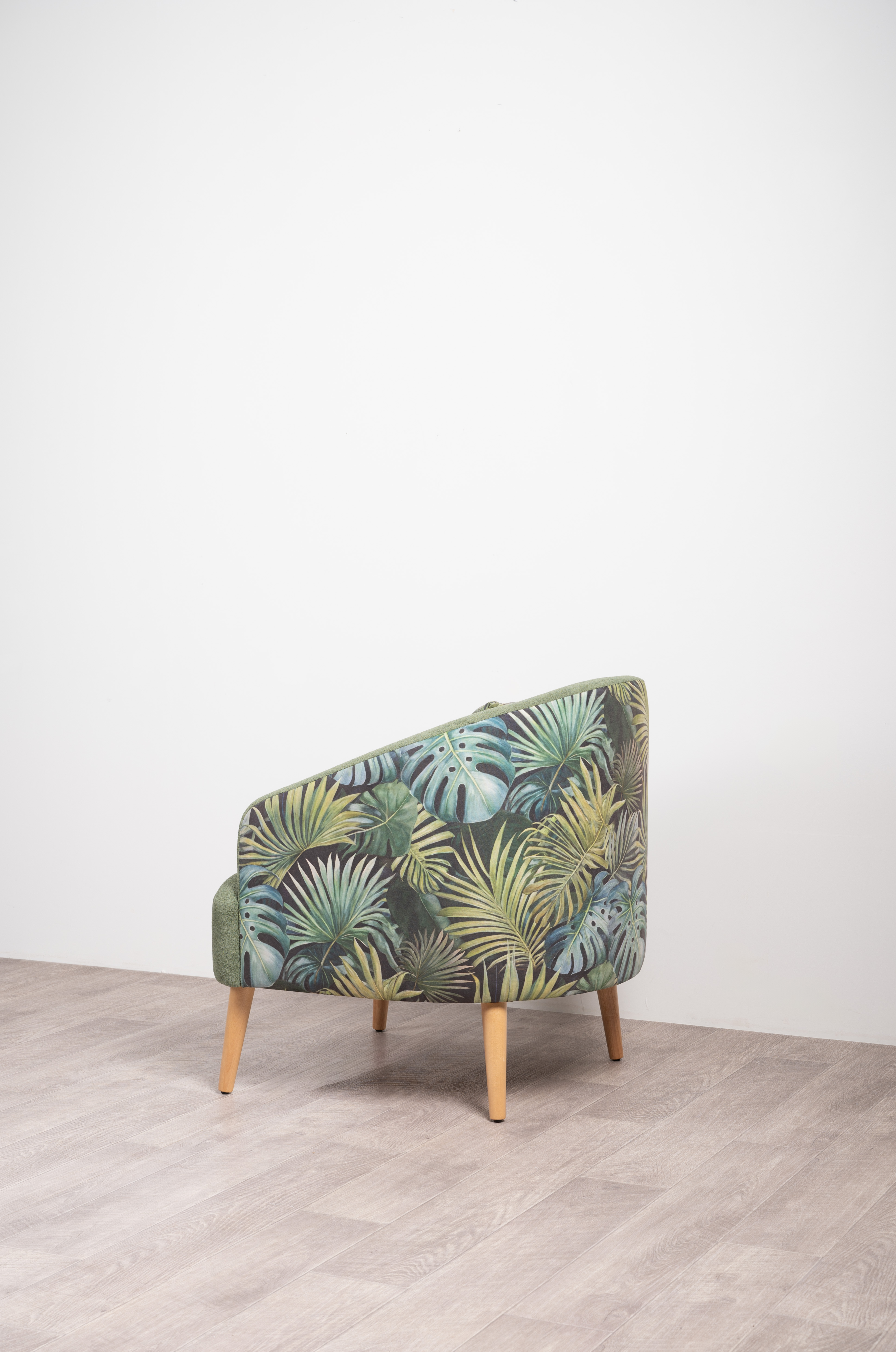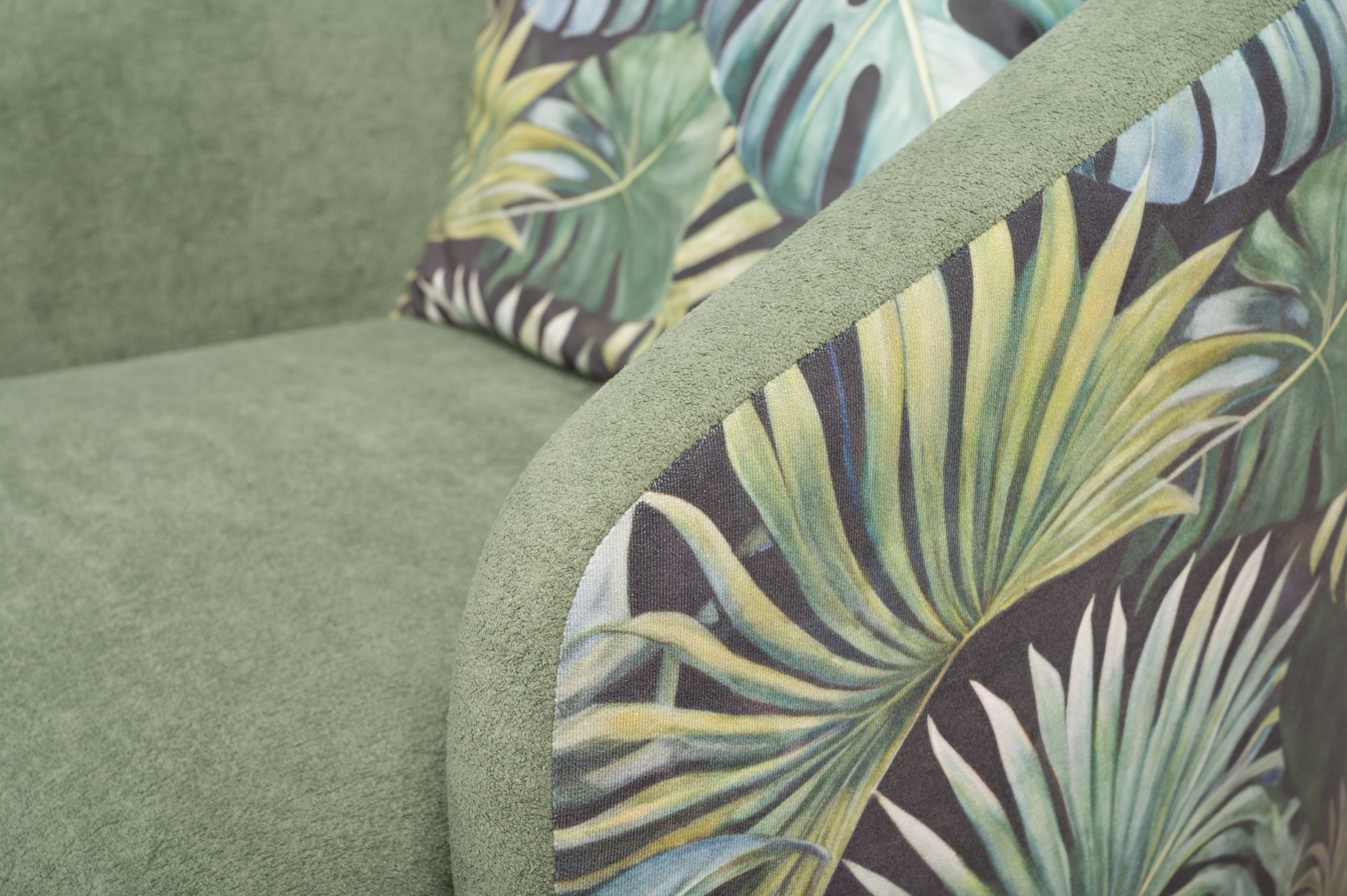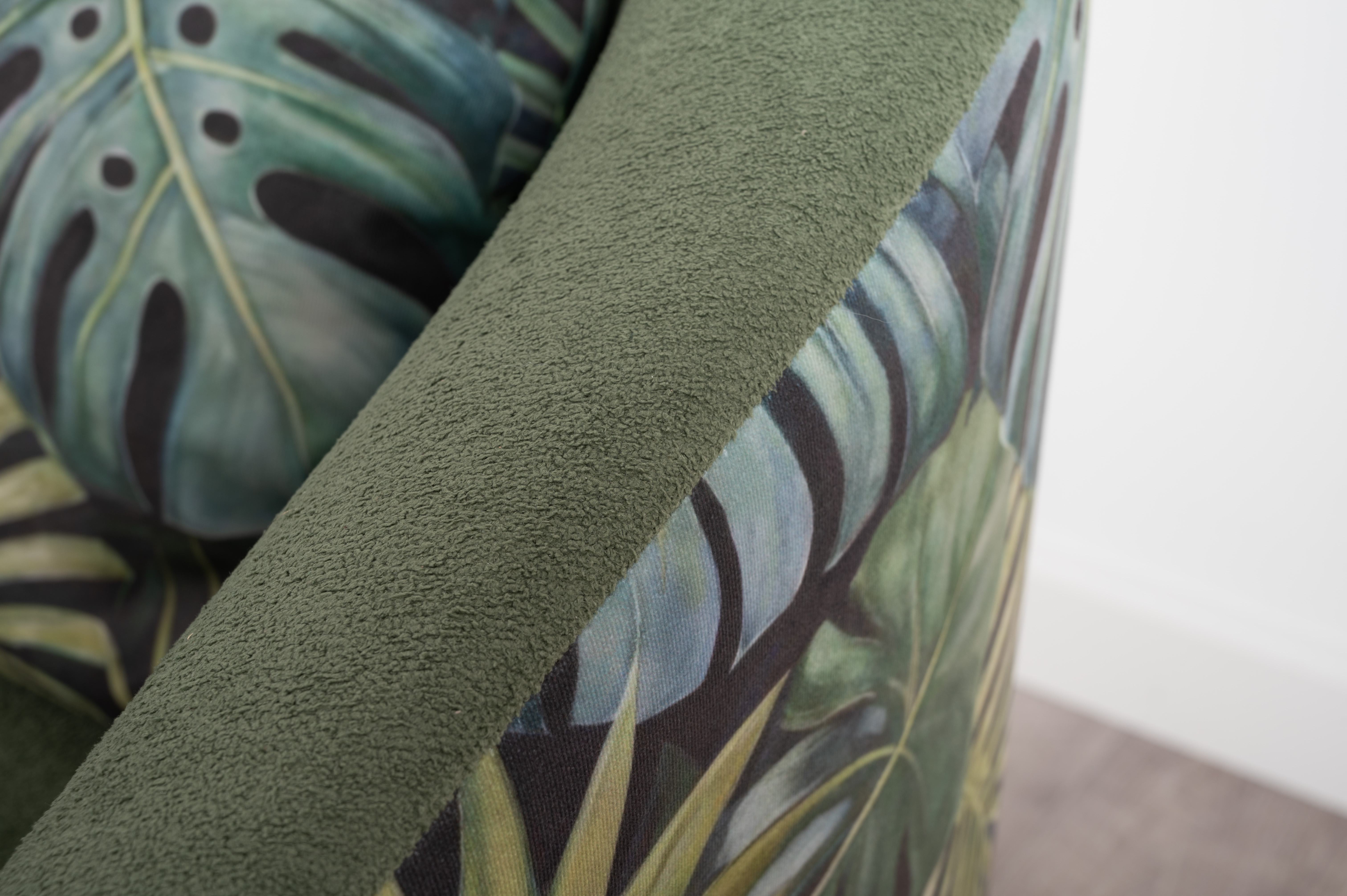 Маттиас — оригинальное кресло готовое стать акцентом в интерьере. Яркий тропический принт «монстера» на спинке мгновенно сделает комнату живой и современной.