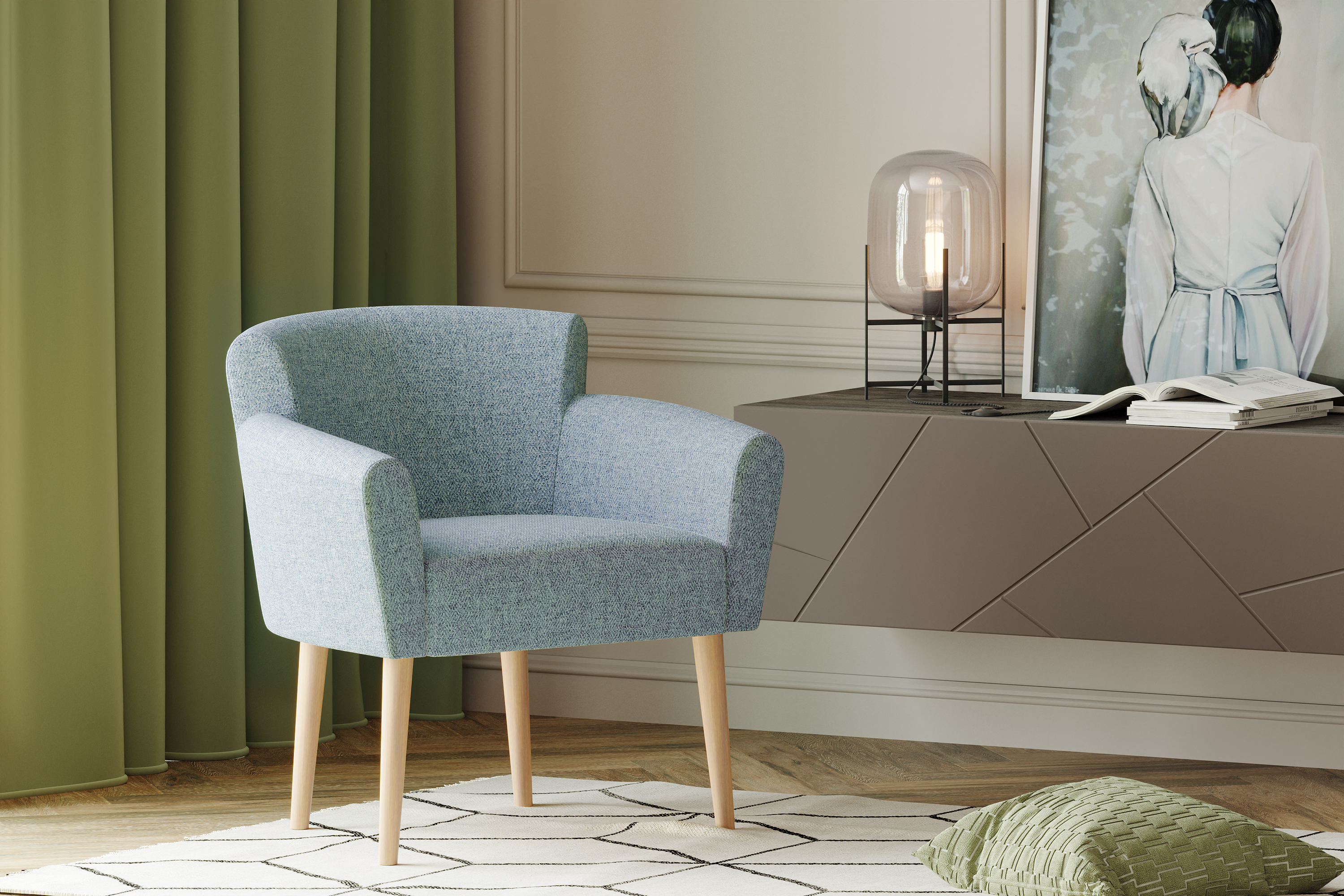 Кресло для отдыха Вирджиния рогожка Sherlock 975 серо-голубой