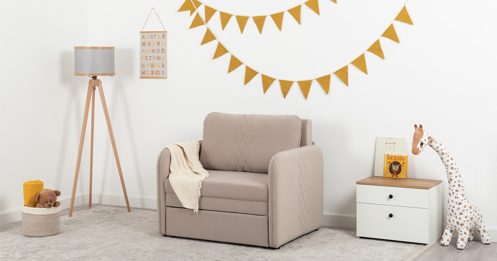 Стильный компактный диван для детской и гостиной. При своих скромных размерах он трансформируется в полноценное спальное место для детей и подростков. Лаконичный дизайн в виде декоративной стежки подчеркивает фактуру велюра, а небольшие размеры позволят разместить его в любом пространстве.