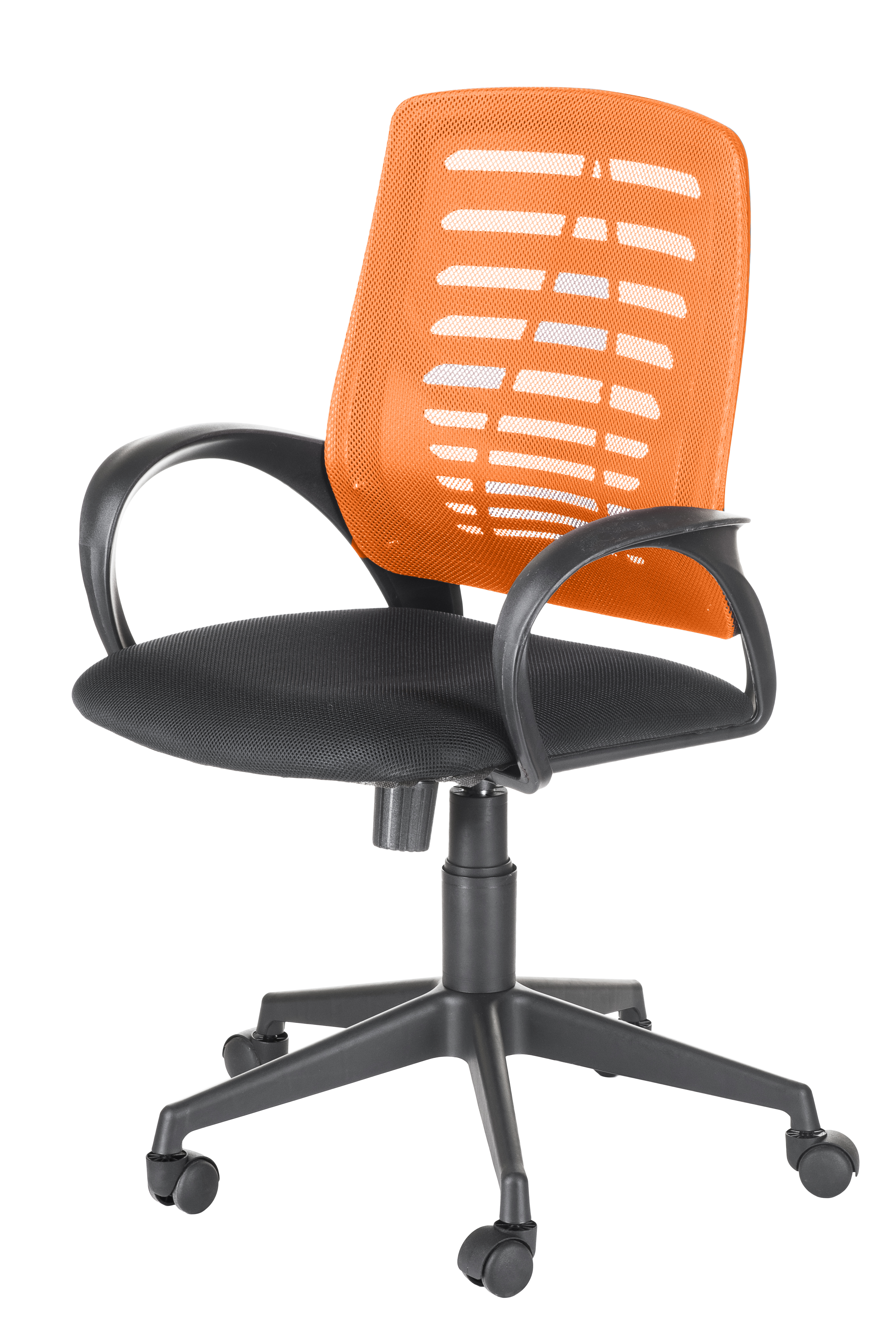Кресло на колесах Ирис люкс обивка ткань-сетка TW сидушка черный, спинка оранж, подлокотники пластик, крестовина пластик, механизм качания