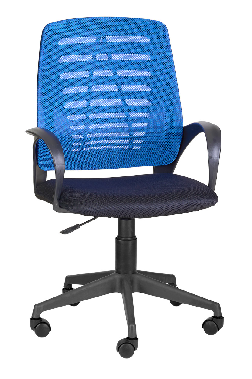 Кресло на колесах Флеш Рондо обивка ткань-сетка синее, подлокотники пластик, крестовина пластик, механизм профи