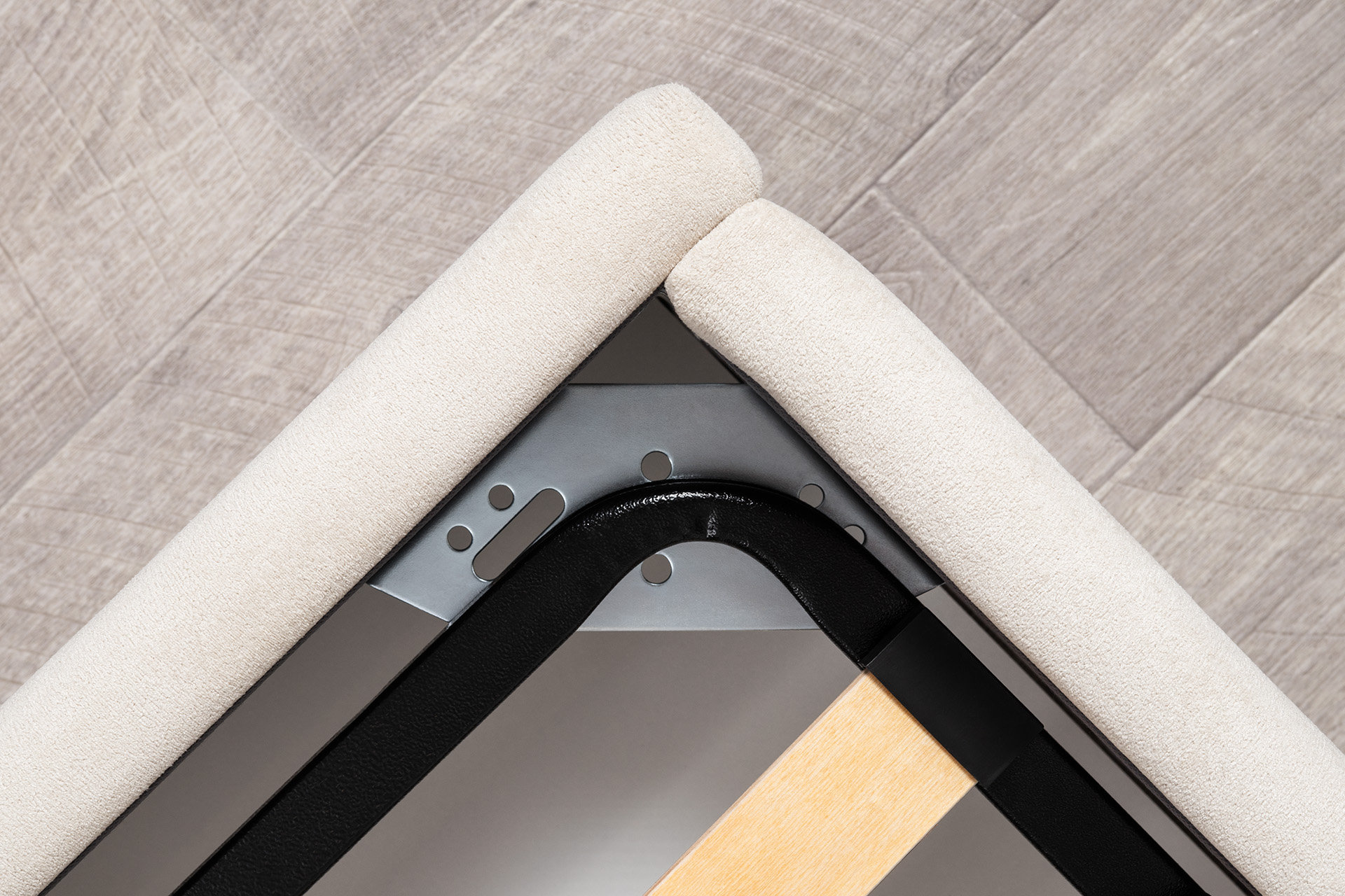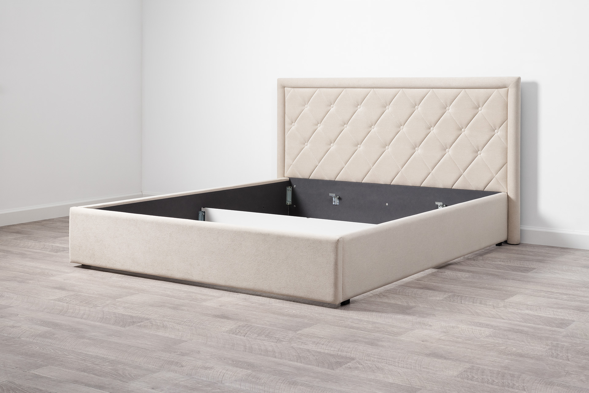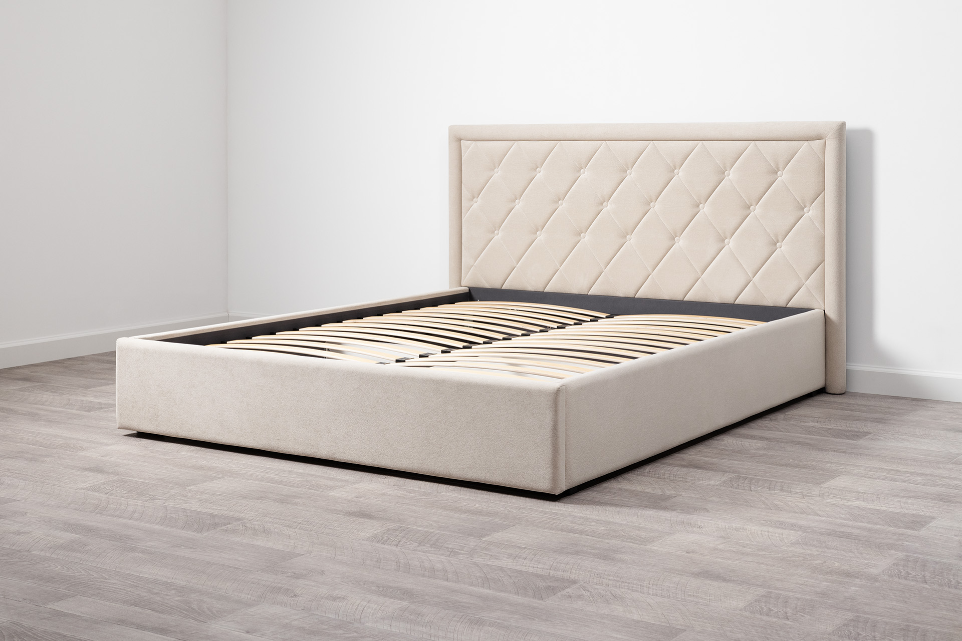 Основание кровати укомплектовано матрасодержателями. Жесткое кроватное дно из ЛДСП 16 мм на опорах 25 мм.