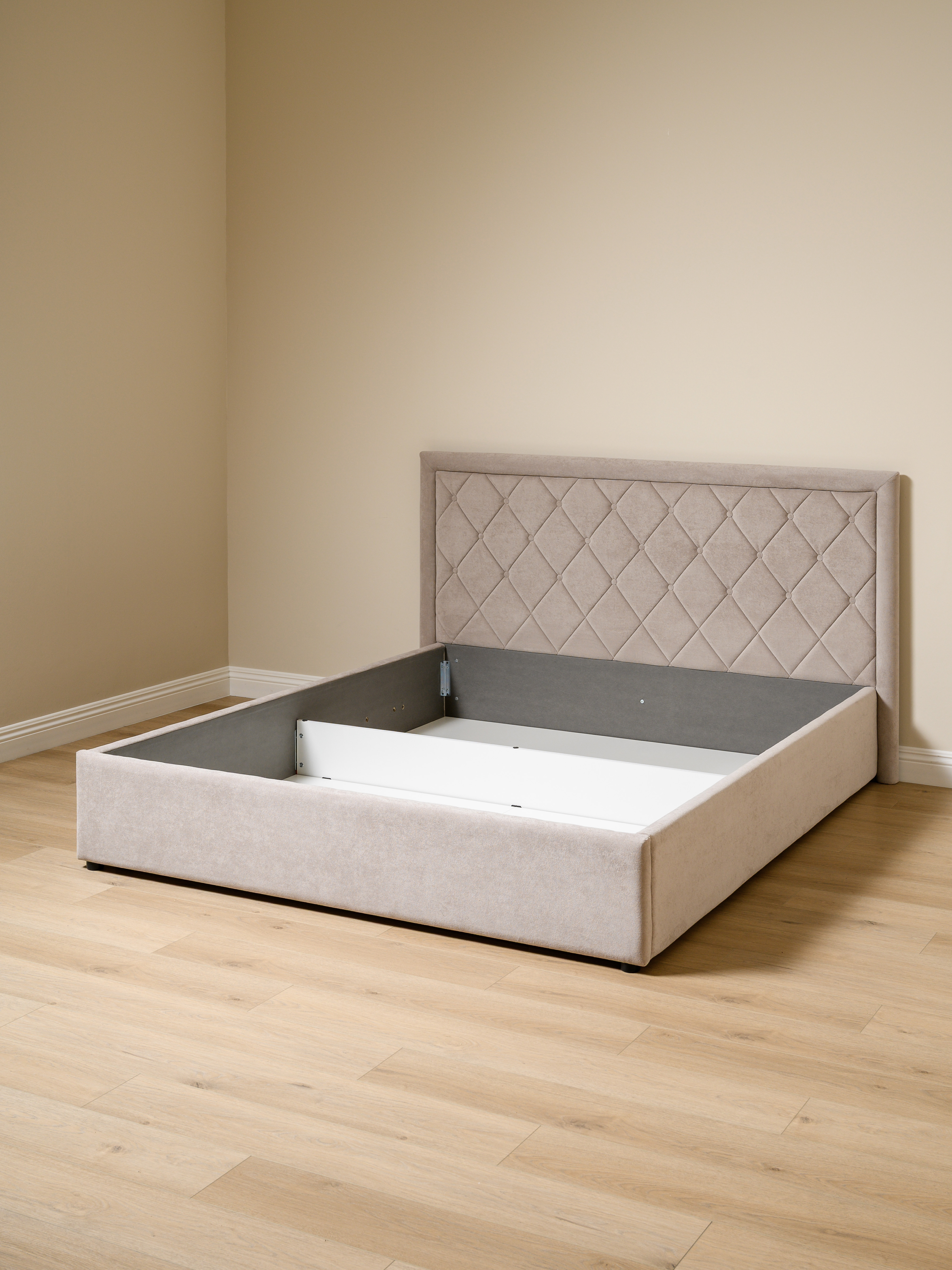 Кровать Марион — это идеальное сочетание стиля и комфорта. Элегантное изголовье оформлено стежкой в виде классической каретной стяжки, украшенной декоративными пуговицами, что придаёт изделию выразительный и утончённый вид. По всему периметру кровати проходит аккуратный валик, подчеркивающий геометрию и завершённость формы.