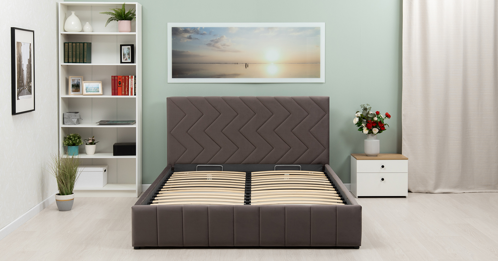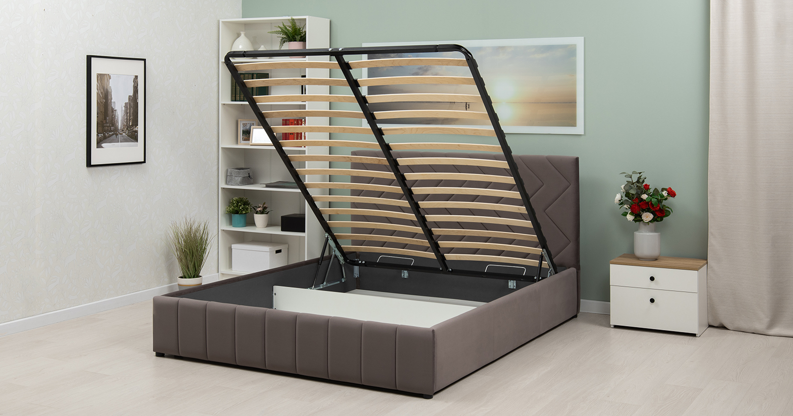 Кровать Милана 180 велюр серо-коричневый с ортопедическим основанием и подъемным механизмом