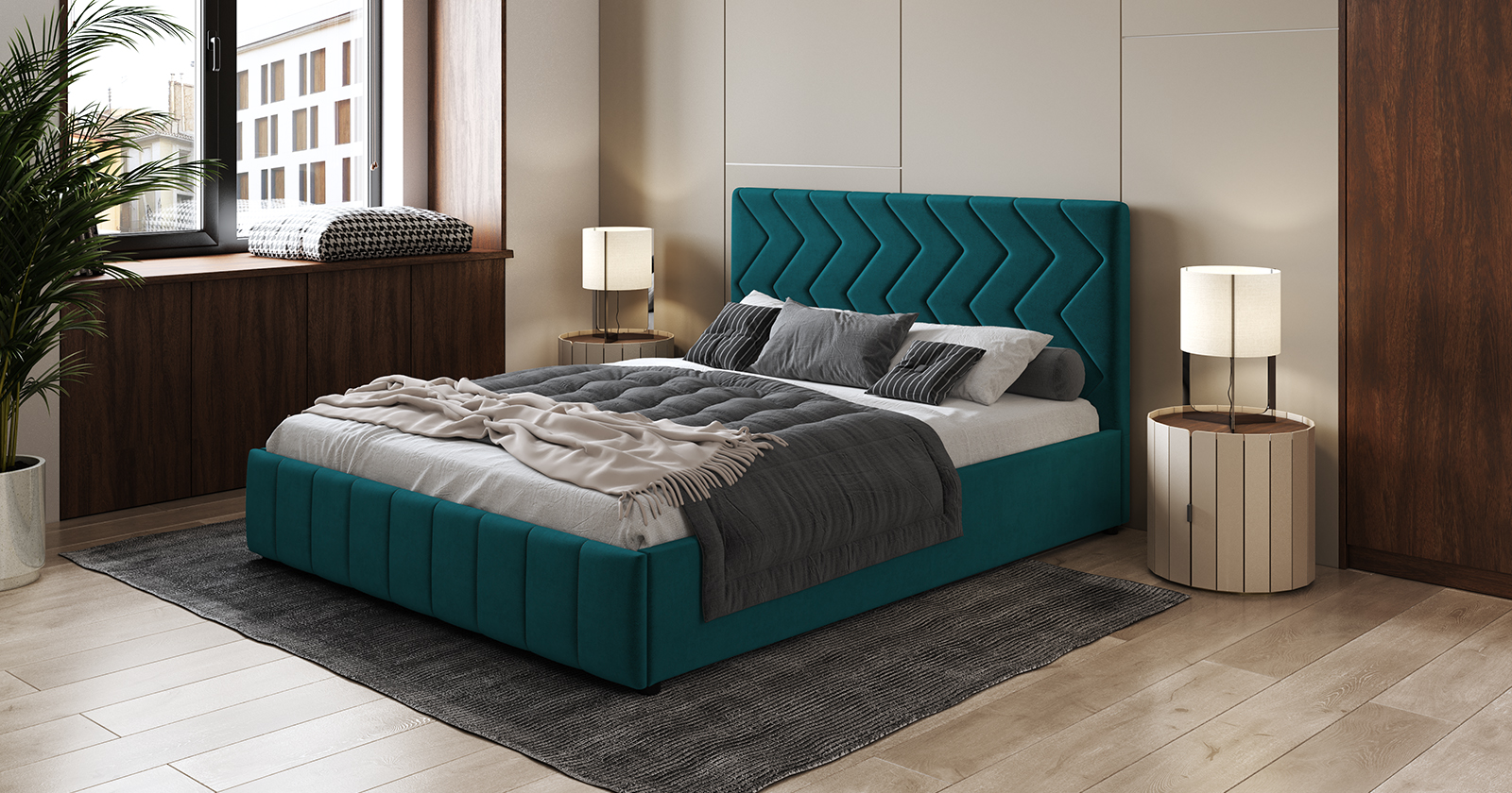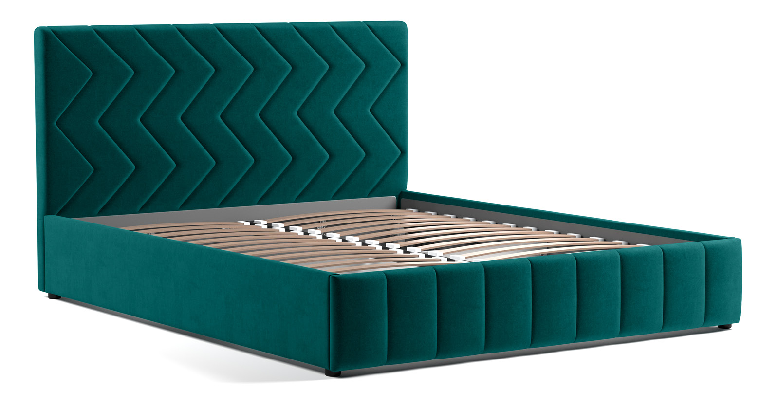 Кровать Милана 160 велюр сине-зеленый с ортопедическим основанием и подъемным механизмом