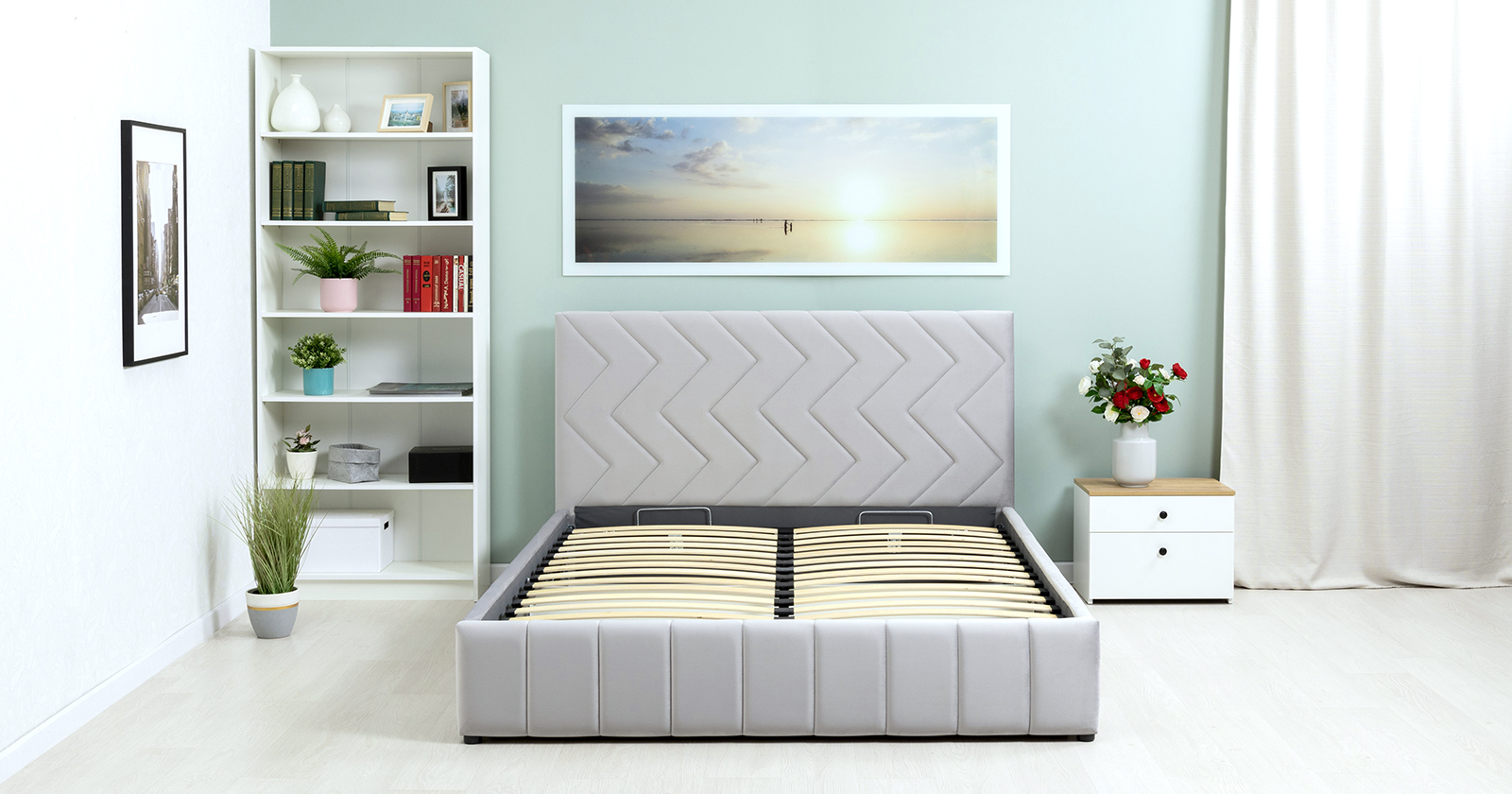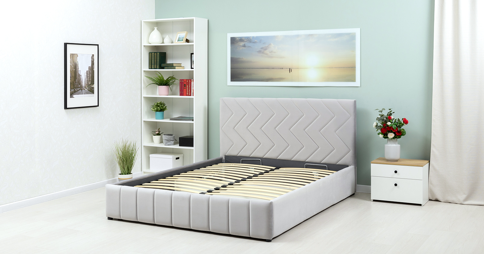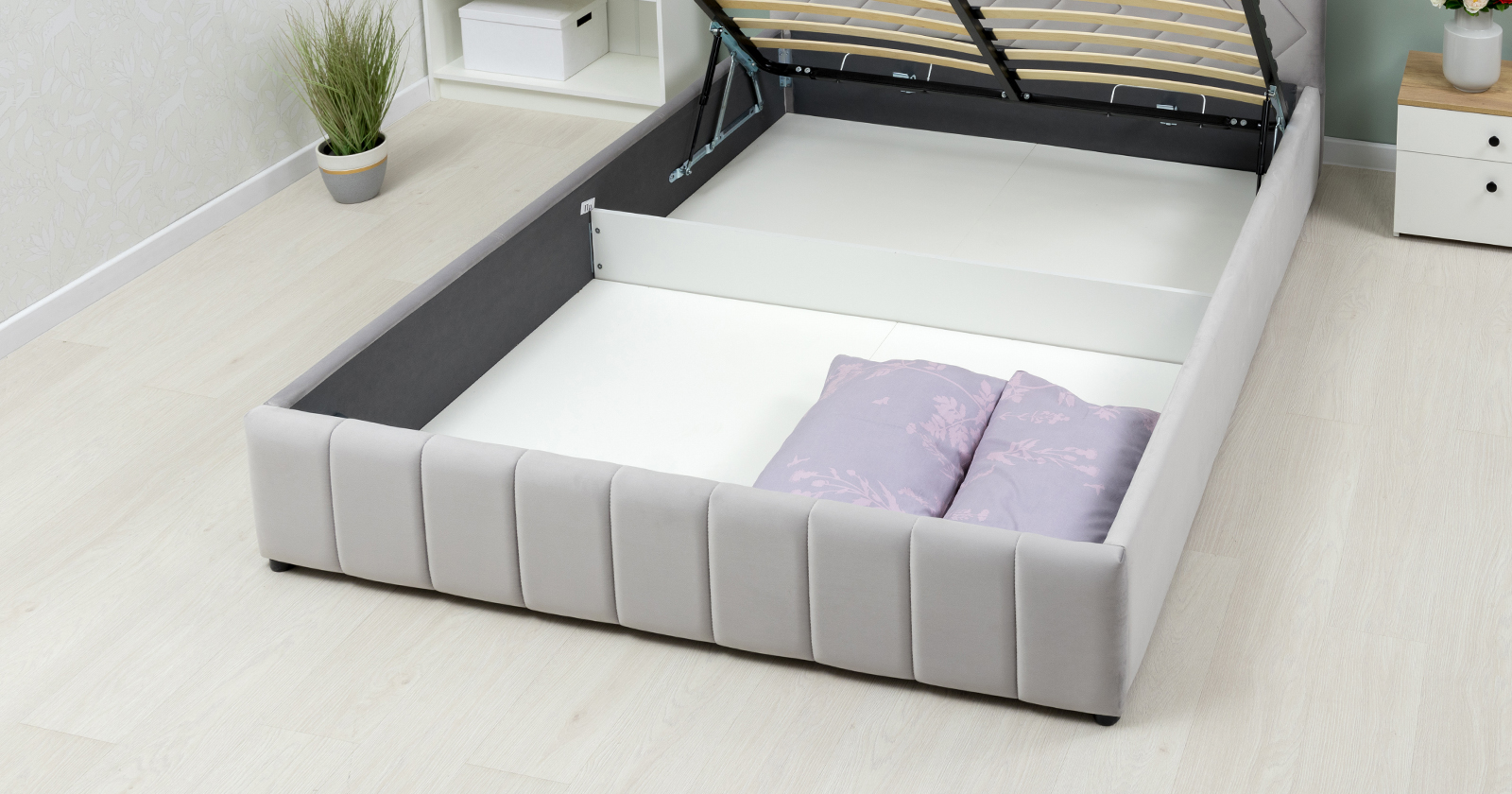 Кровать Милана 160 велюр светло-серый с ортопедическим основанием и подъемным механизмом