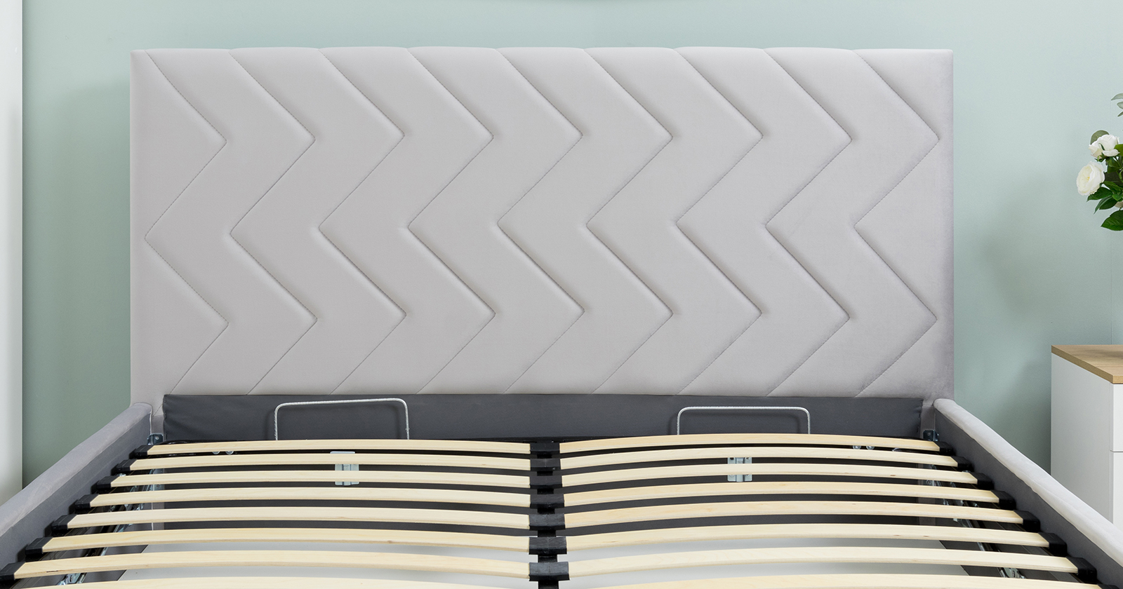 Основание кровати укомплектовано матрасодержателями. Жесткое кроватное дно из ЛДСП 16 мм. Задняя стенка изголовья выполнена в тех. ткани (спанбонд).