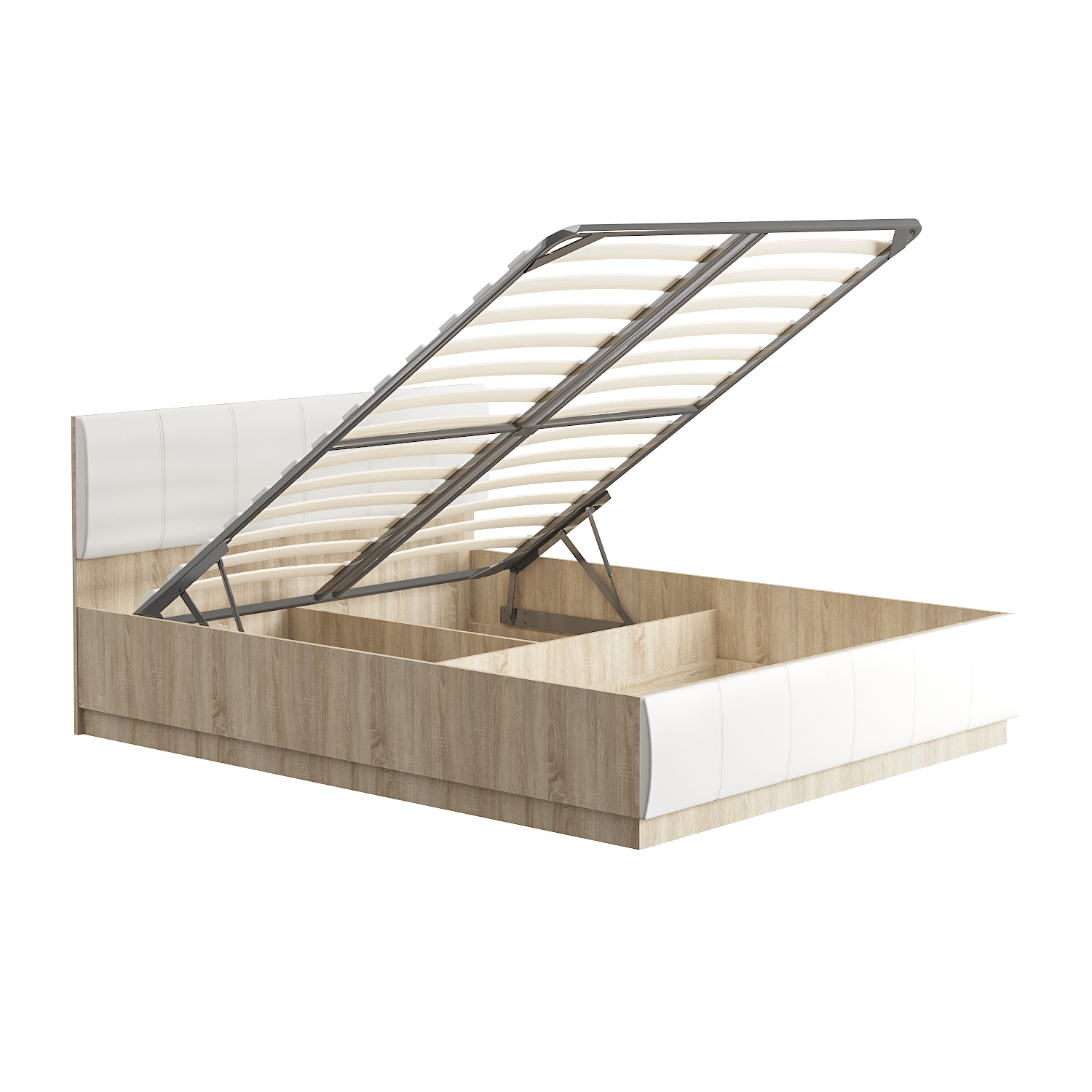 Кровать Линда 160 с ортопедическим основанием и подъемным механизмом, дуб сонома, эко 100 кожзам гранд белый