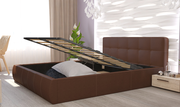 Кровать двухспальная Оскар 73-1 Коричневая 140 с ортопедическим основанием и подъемным механизмом