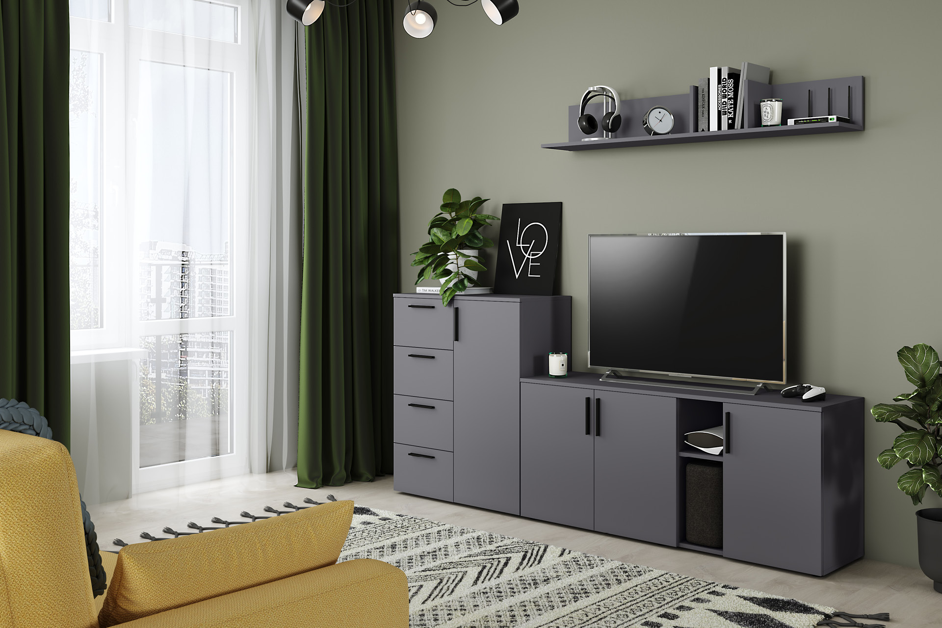 Тумба под ТВ Эйр 16.55 серый графит 0162 РЕ, собирается на любую сторону