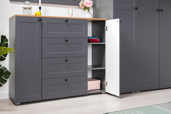 Шкаф для одежды Остин 13.224 серый графит, дуб вотан, серый графит ПВХ