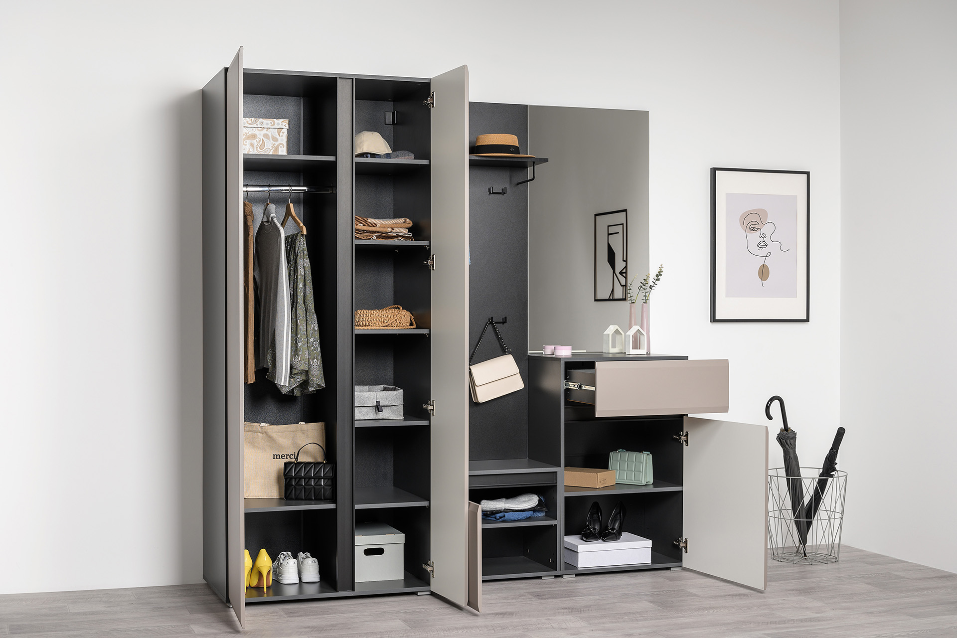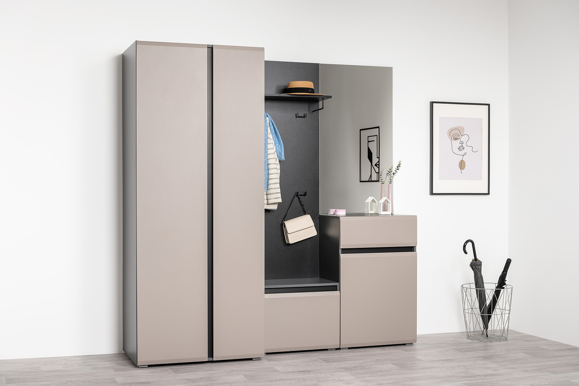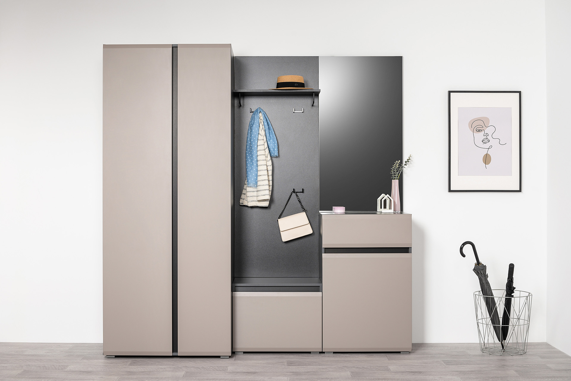 Прихожая Сидней композиция 2 антрацит, веллюто капучино ПВХ (универсальная сборка)