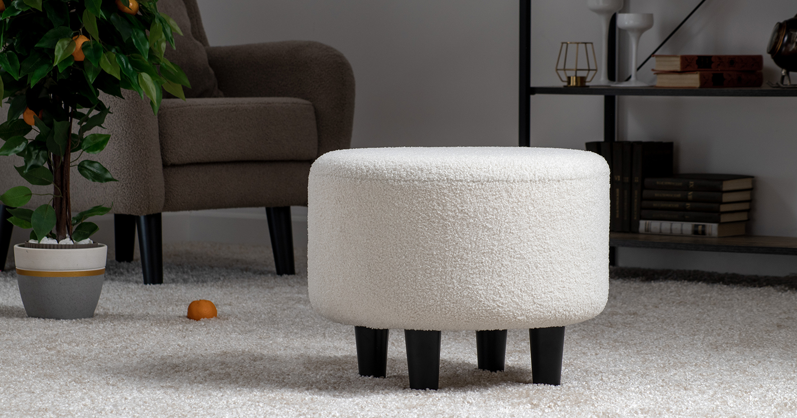 Пуф Шон выполнен в современном стиле. Пуф имеет мягкую, округлую форму. Может использоваться как дополнительное сиденье или подставка для ног. Универсальный предмет мебели, который можно использовать в прихожей, спальне, гостиной, детской и любом другом помещении. Ткань букле делает кресло особенно уютным и мягким.