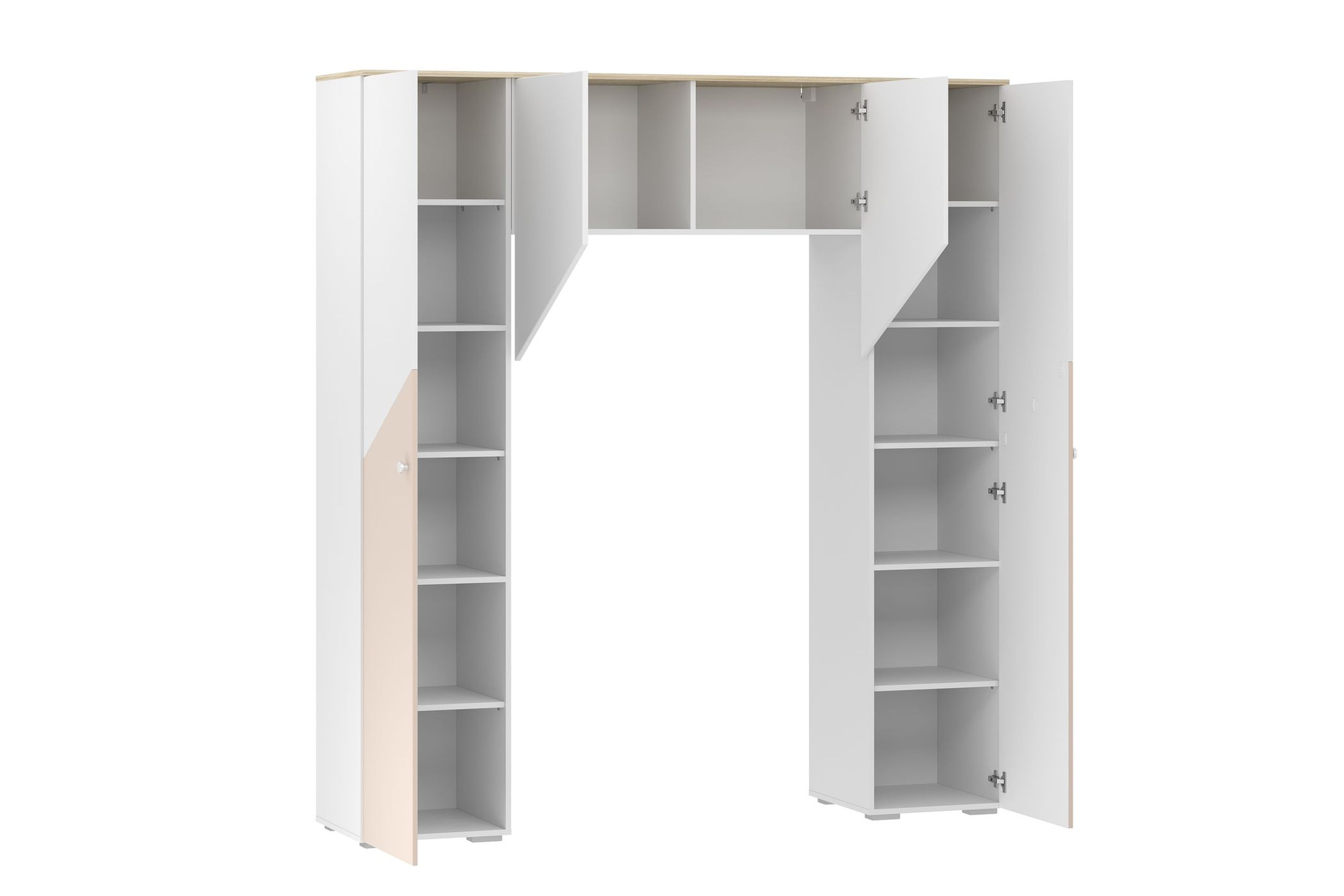 Шкаф комбинированный НМ 041.45 Банни представляет собой 2 шкафа для одежды соединённых между собой навесной полкой с двумя дверцами.