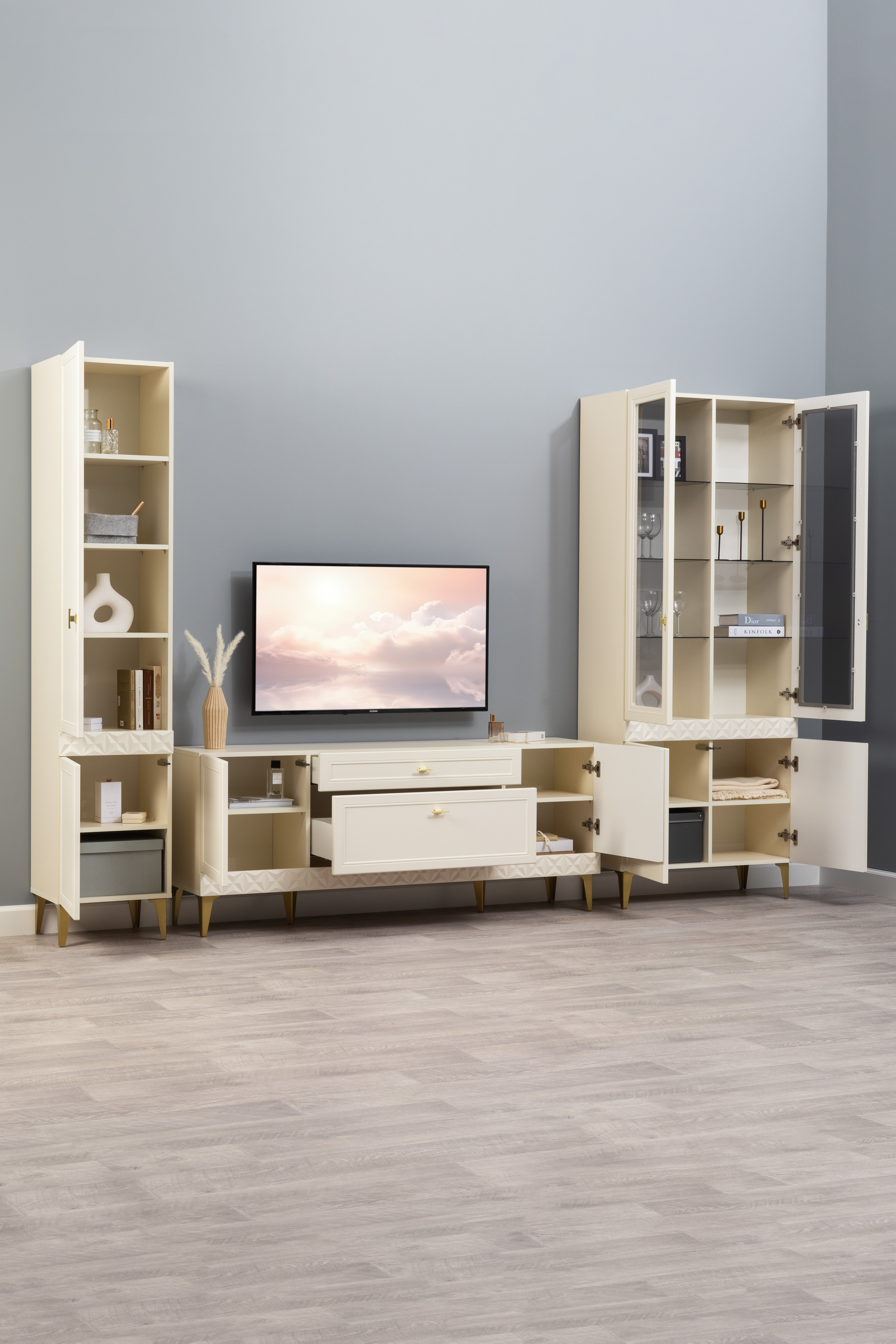 Шкаф-витрина Марион 16.397.01 слоновая кость С341 PE, слоновая кость 6898 ПВХ (собирается на любую сторону)