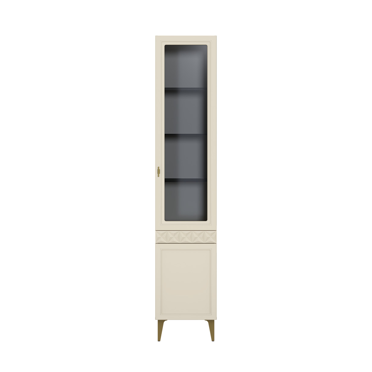 Шкаф-витрина Марион 16.397.01 слоновая кость С341 PE, слоновая кость 6898 ПВХ (собирается на любую сторону)