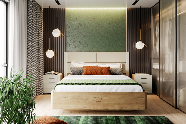 Спальня Livorno композиция 4 дуб бунратти, софт панакота (кровать с ортопедическим основанием и подъемным механизмом)