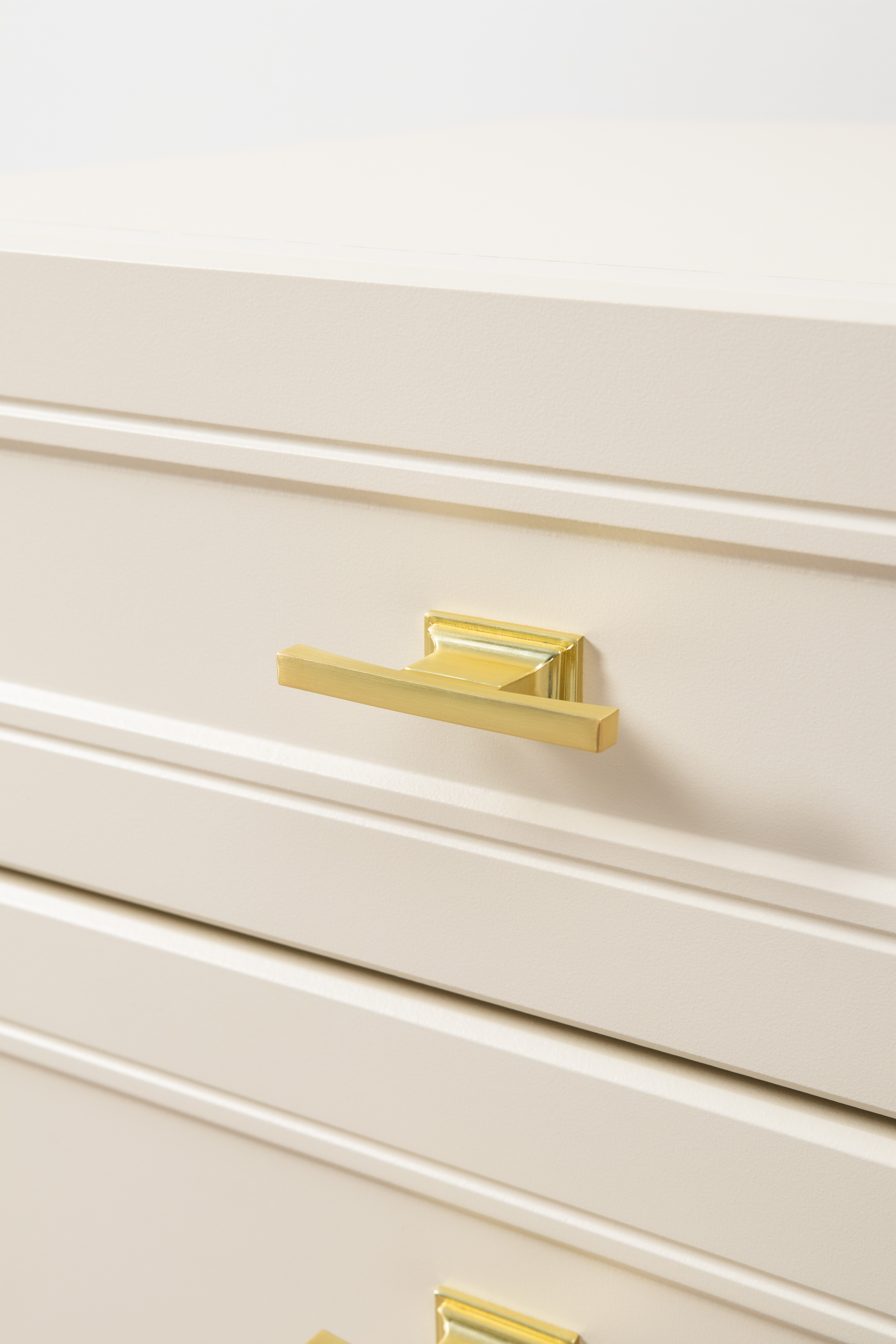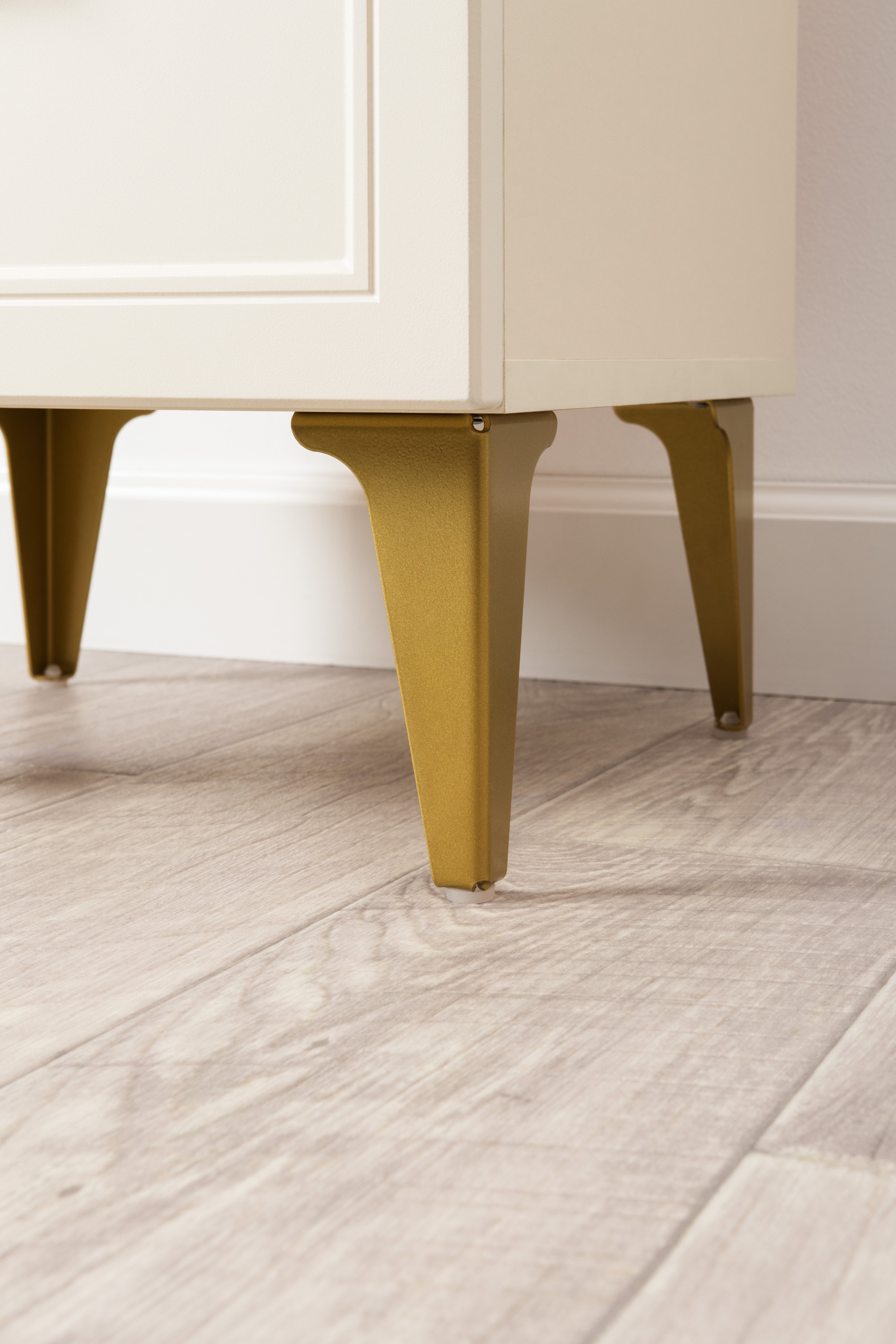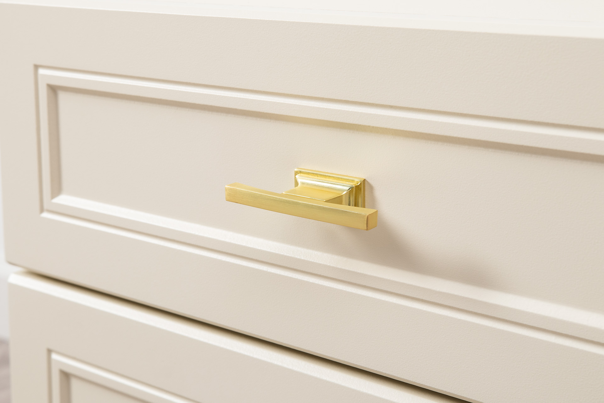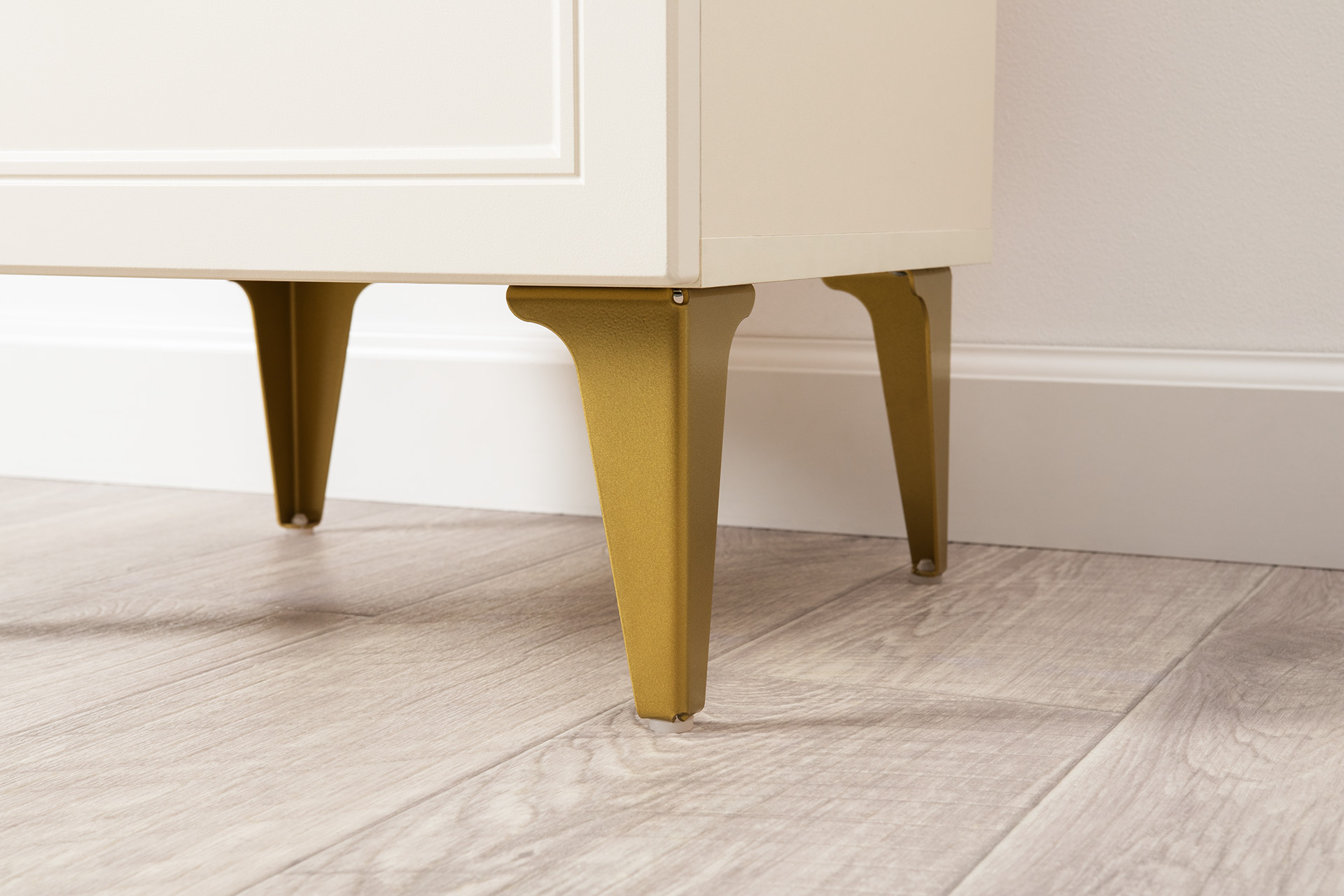 Изящные линии, глубокая фрезеровка фасадов из МДФ и благородные оттенки. Утончённая «Слоновая кость» и изысканная «Олива Шагрень» с глубоким зелёным тоном — создают атмосферу уюта, тепла и благородства. Металлические ручки и опоры золотого цвета придают мебели утончённый блеск, а петли и направляющие с доводчиками обеспечивают плавное и бесшумное закрытие фасадов.