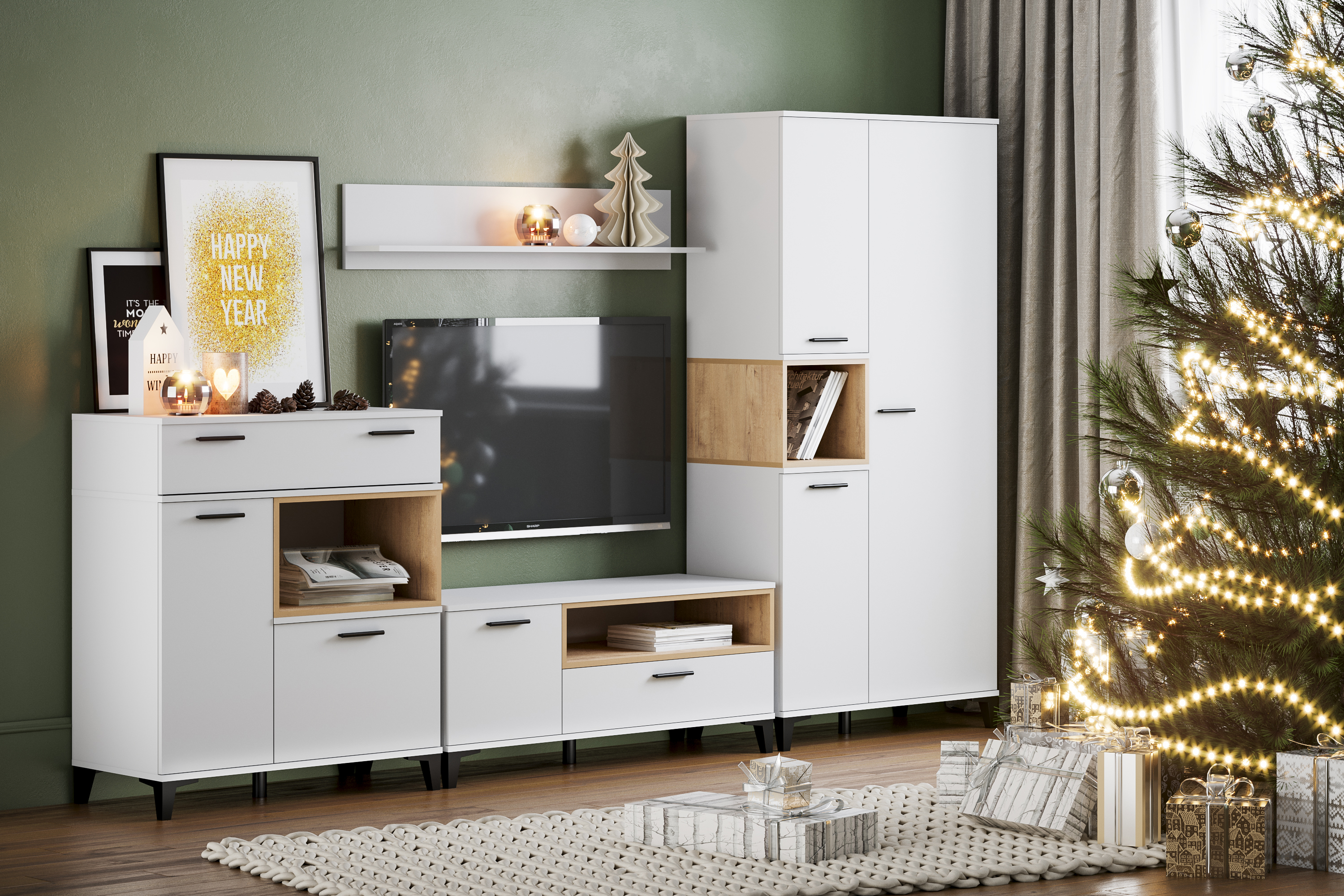 Тумба под ТВ в гостиную 13.267.03 белый PE шагрень, альберо, милк софт ПВХ
