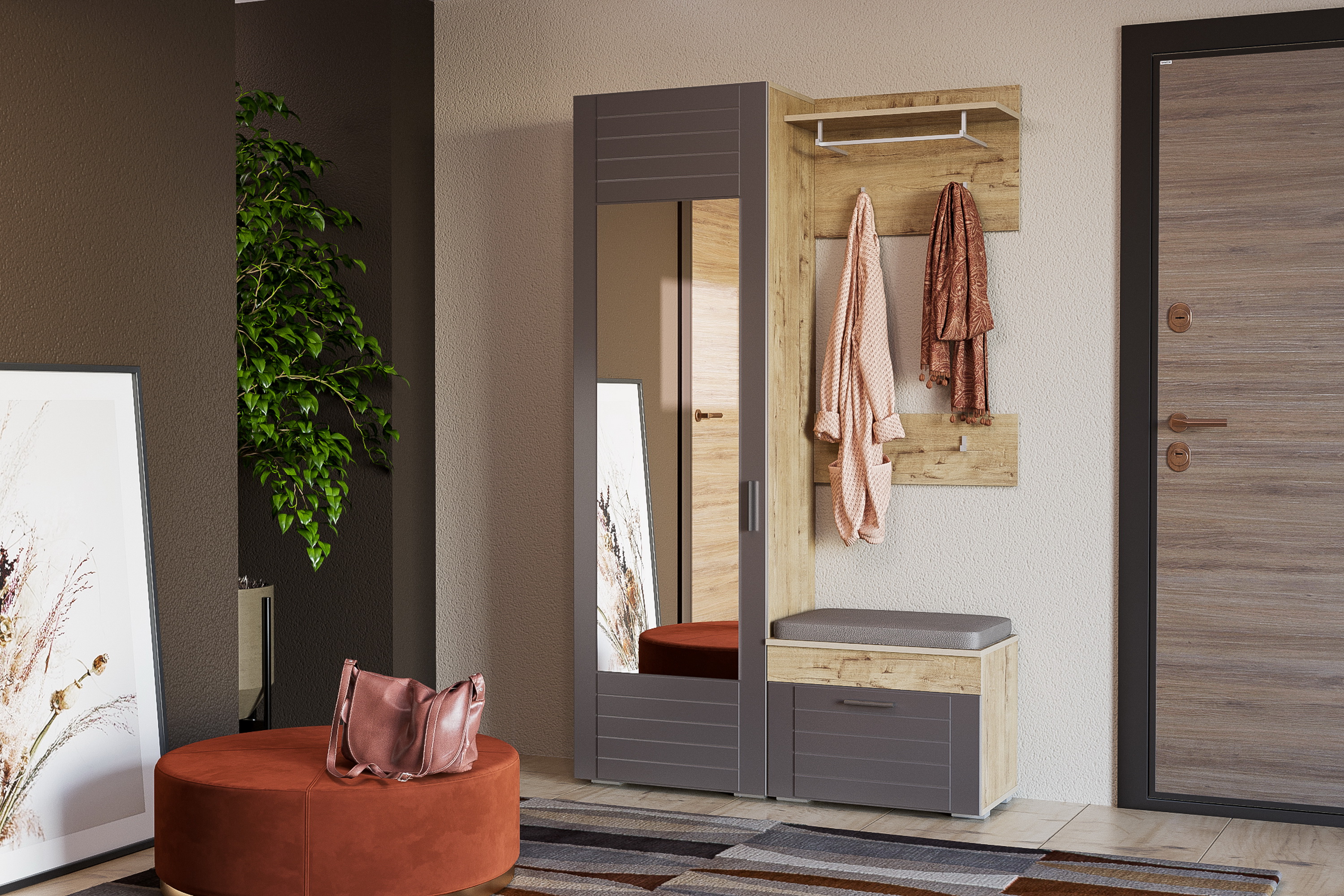 Вешалка навесная в прихожую Юнона дуб белый CRAFT, серый шифер