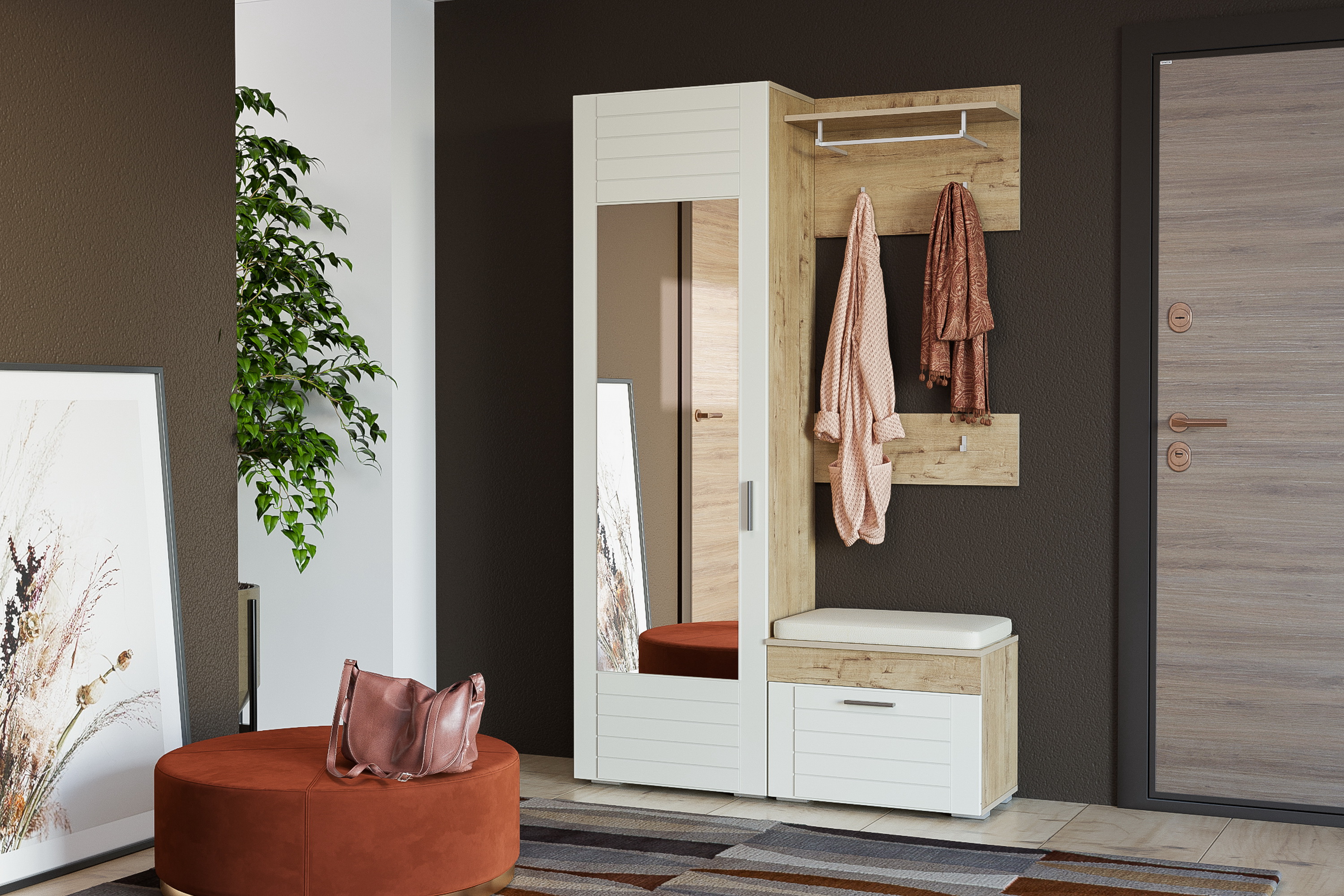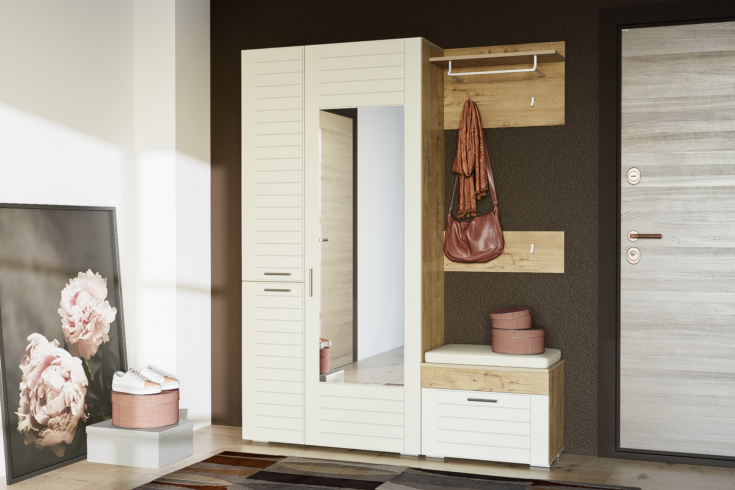 Вешалка в прихожую Глория 104/02 дуб винтаж оксид, белый РЕ шагрень
